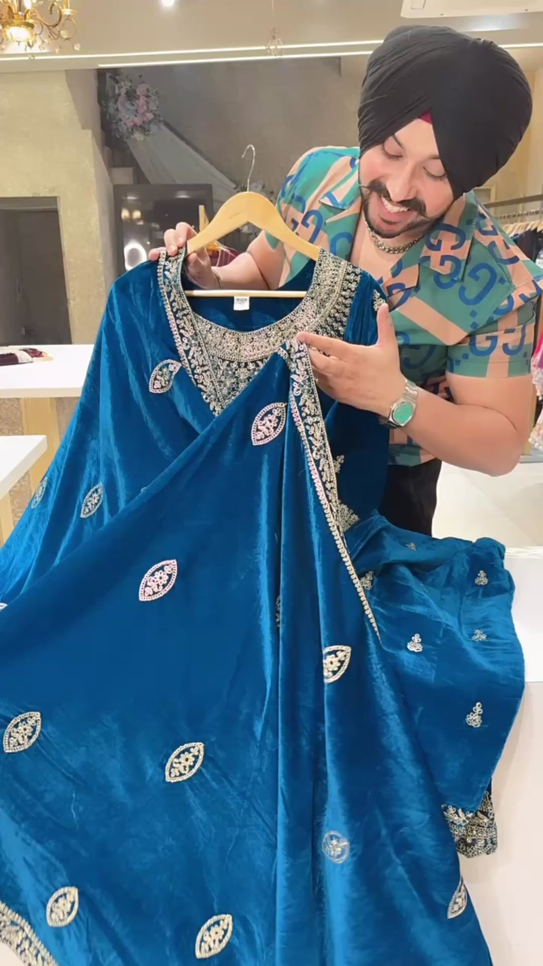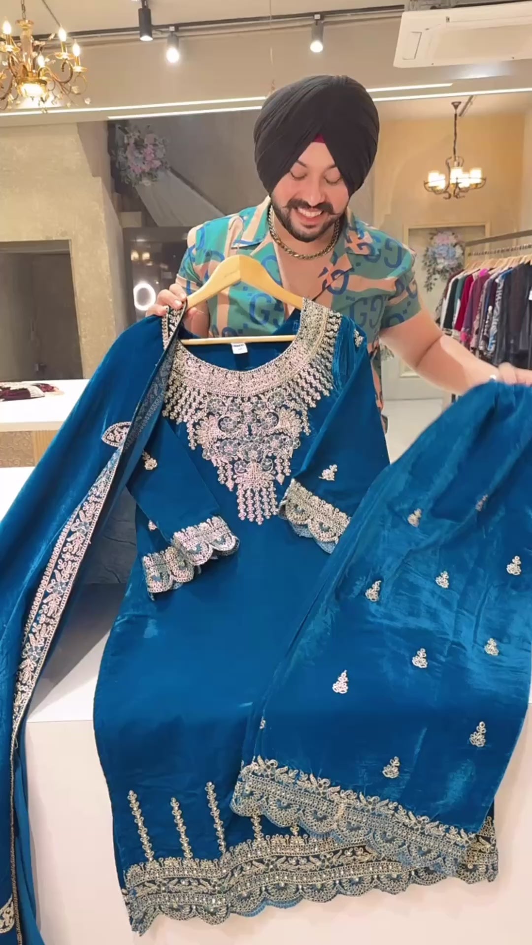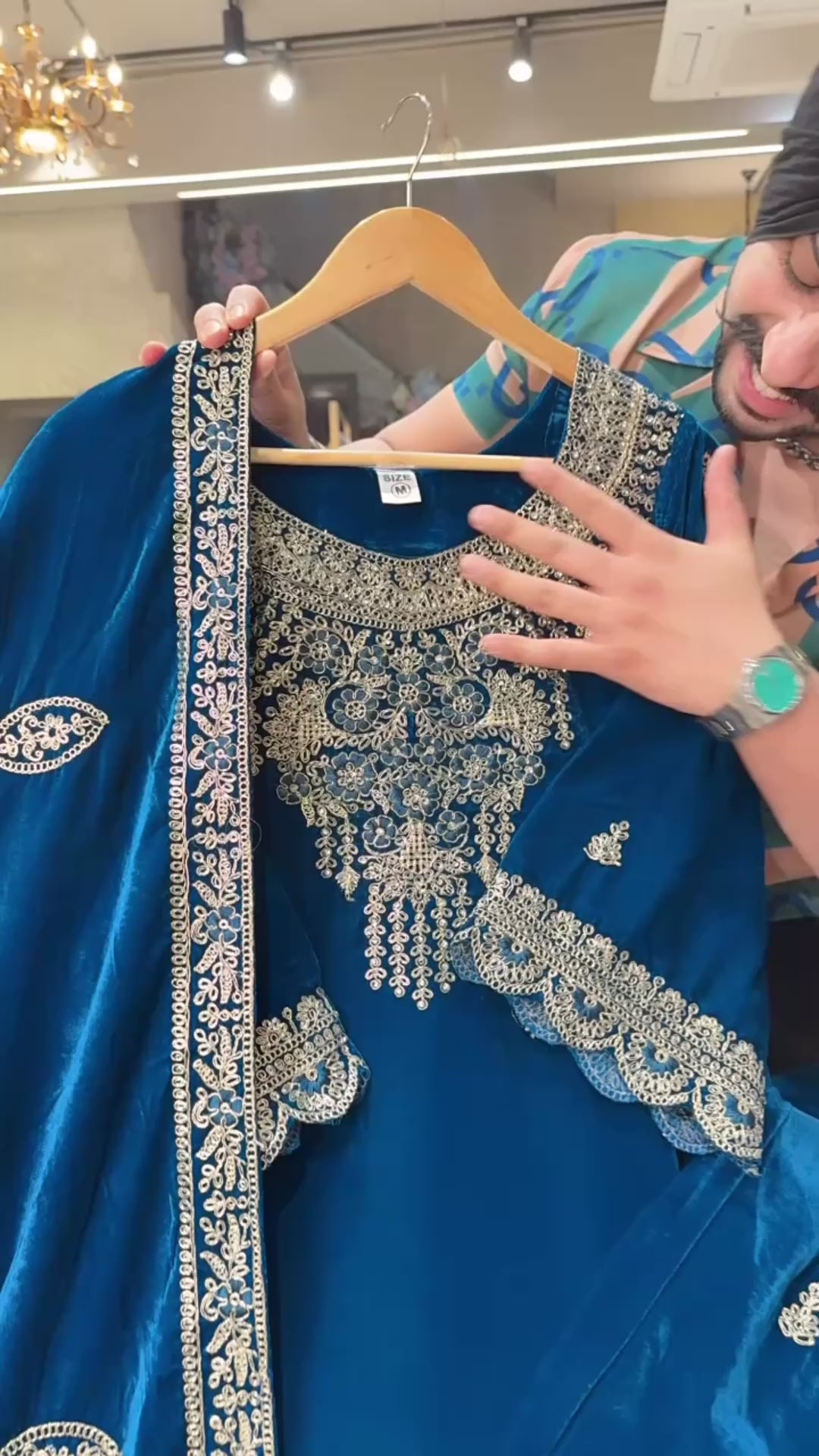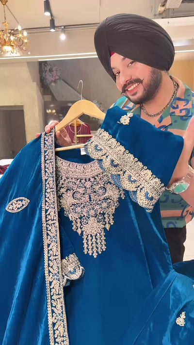 Teel Blue Heavy Velvet Front & Back embroidered Party wear Kashmiri Suit with Beautiful Duppata