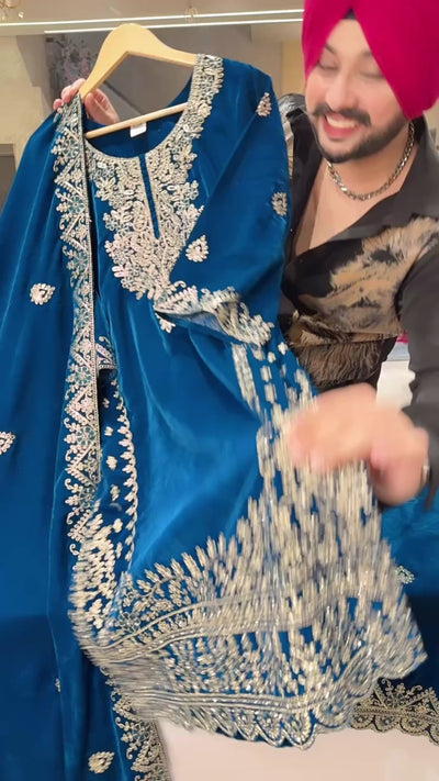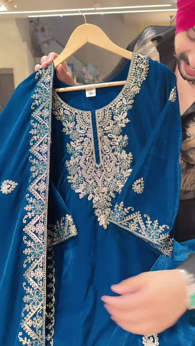 Teel Velvet Heavy Embroidered Kashmiri Suits with Beautiful Embroidered Duppata