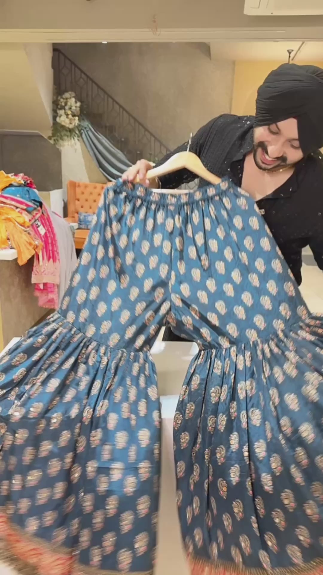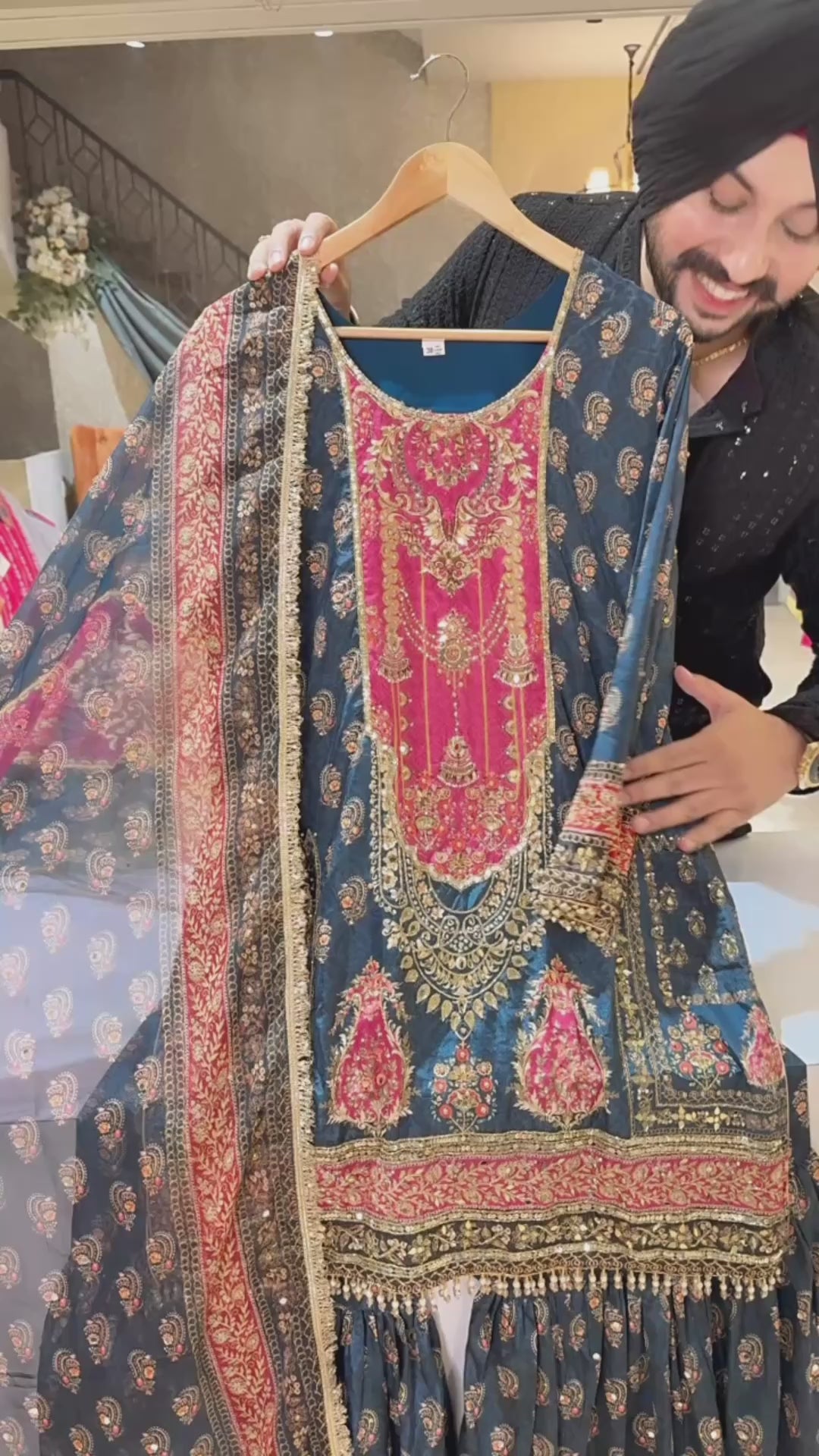 Ink Blue Crepe Heavy Hand Embroidered Garara suit with Beautiful Duppata