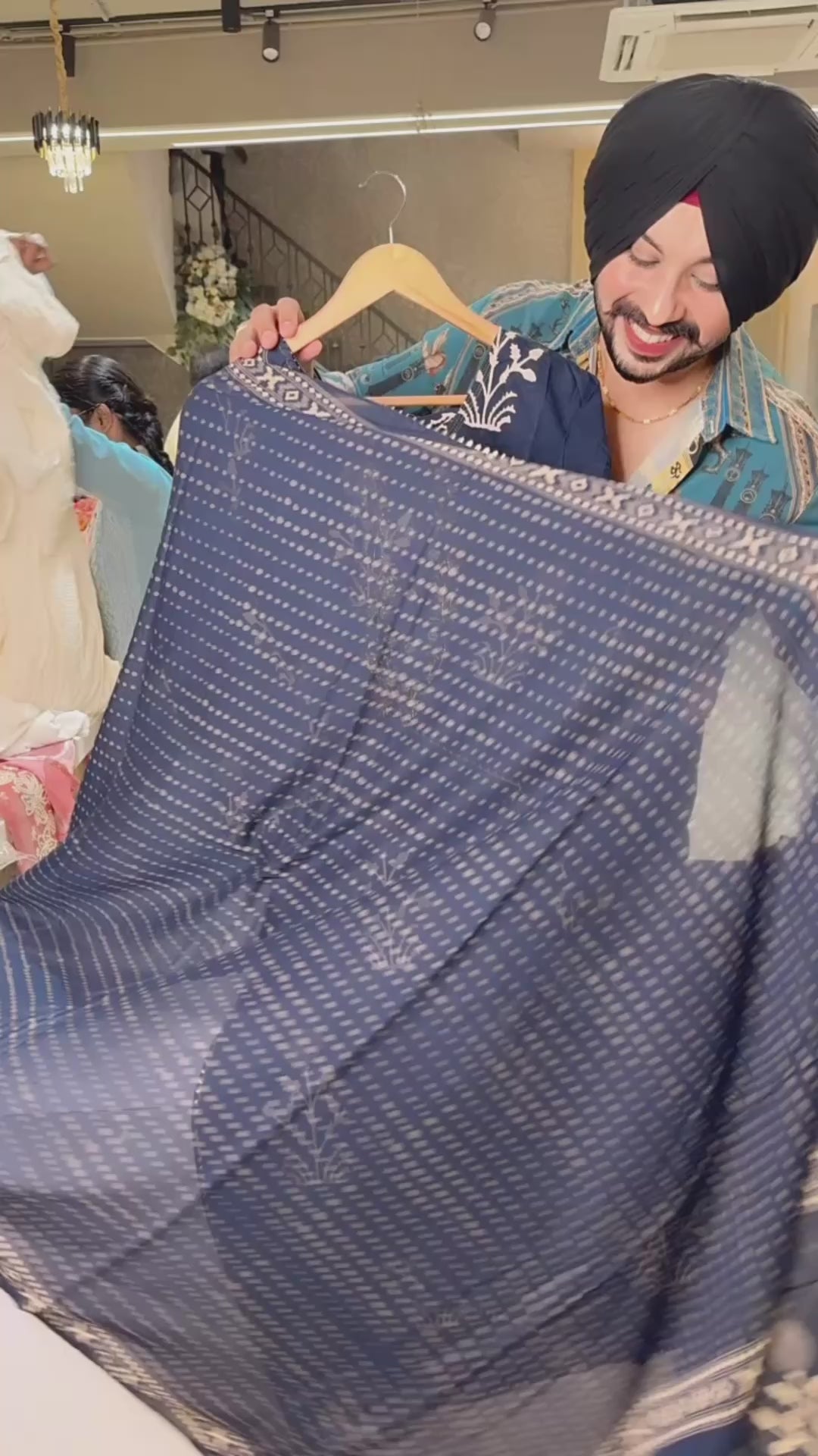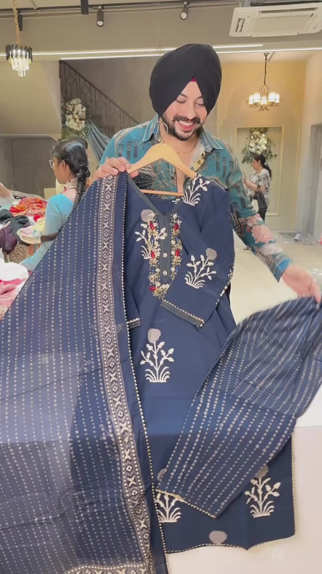 Blue Pure Cotton Office Wear Suit with hand work on neck