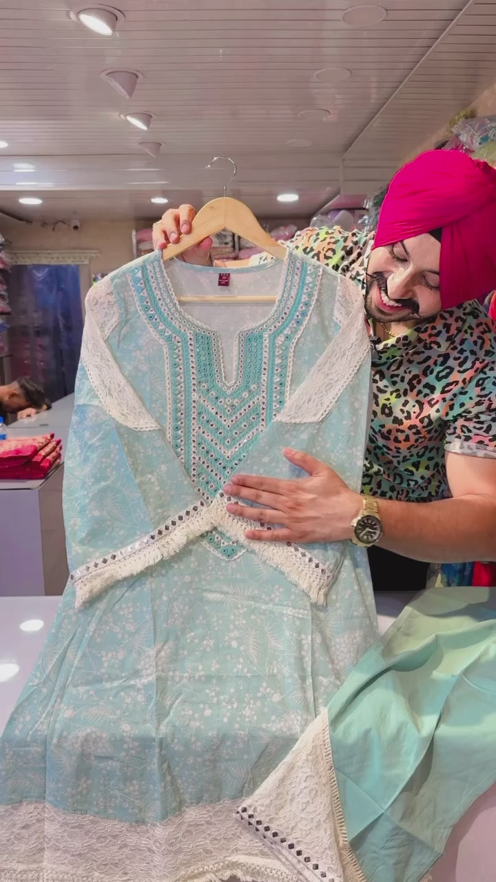 Sea Blue Pure cotton Pakistani Coord set with Beautiful Crochet lace work