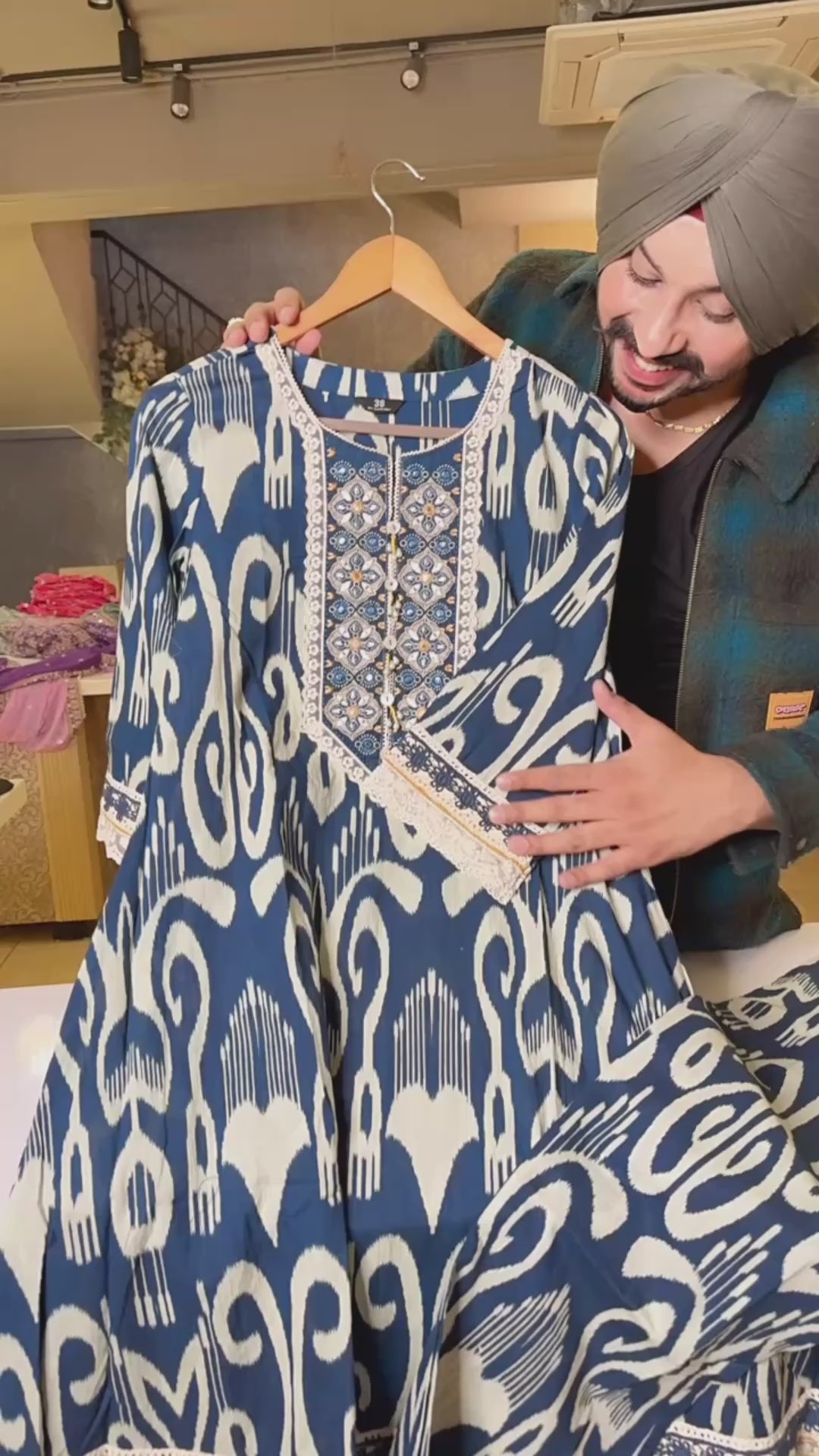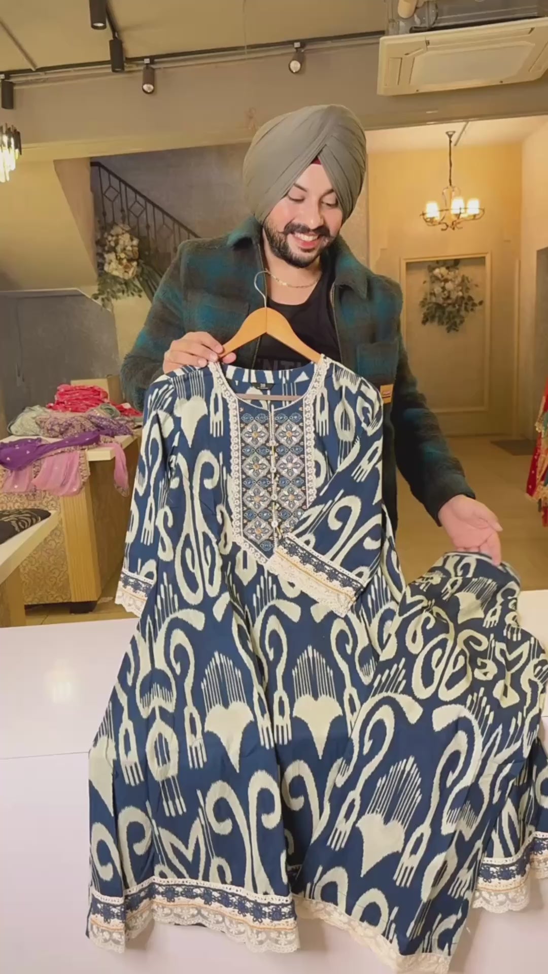 Blue Pure Cotton Paplum Coord set with embroidery Work on neck