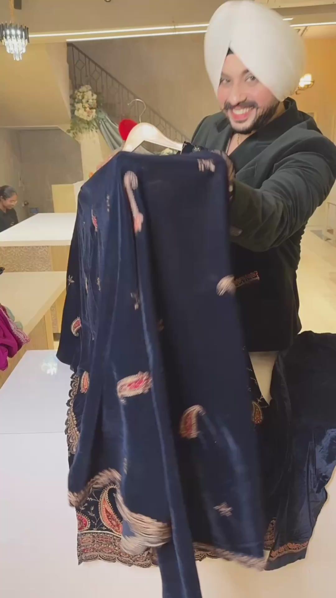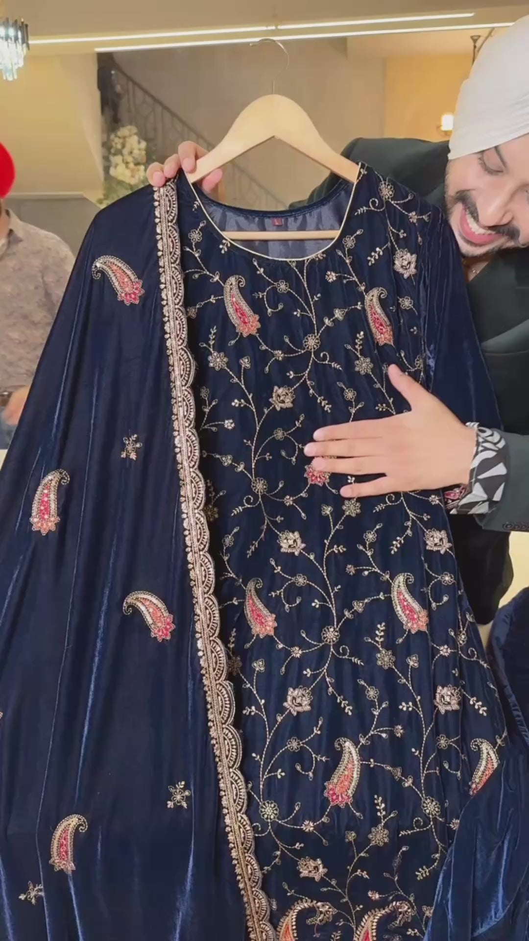 Navy Blue Heavy embroidered straight Velvet Suit with Heavy Duppata