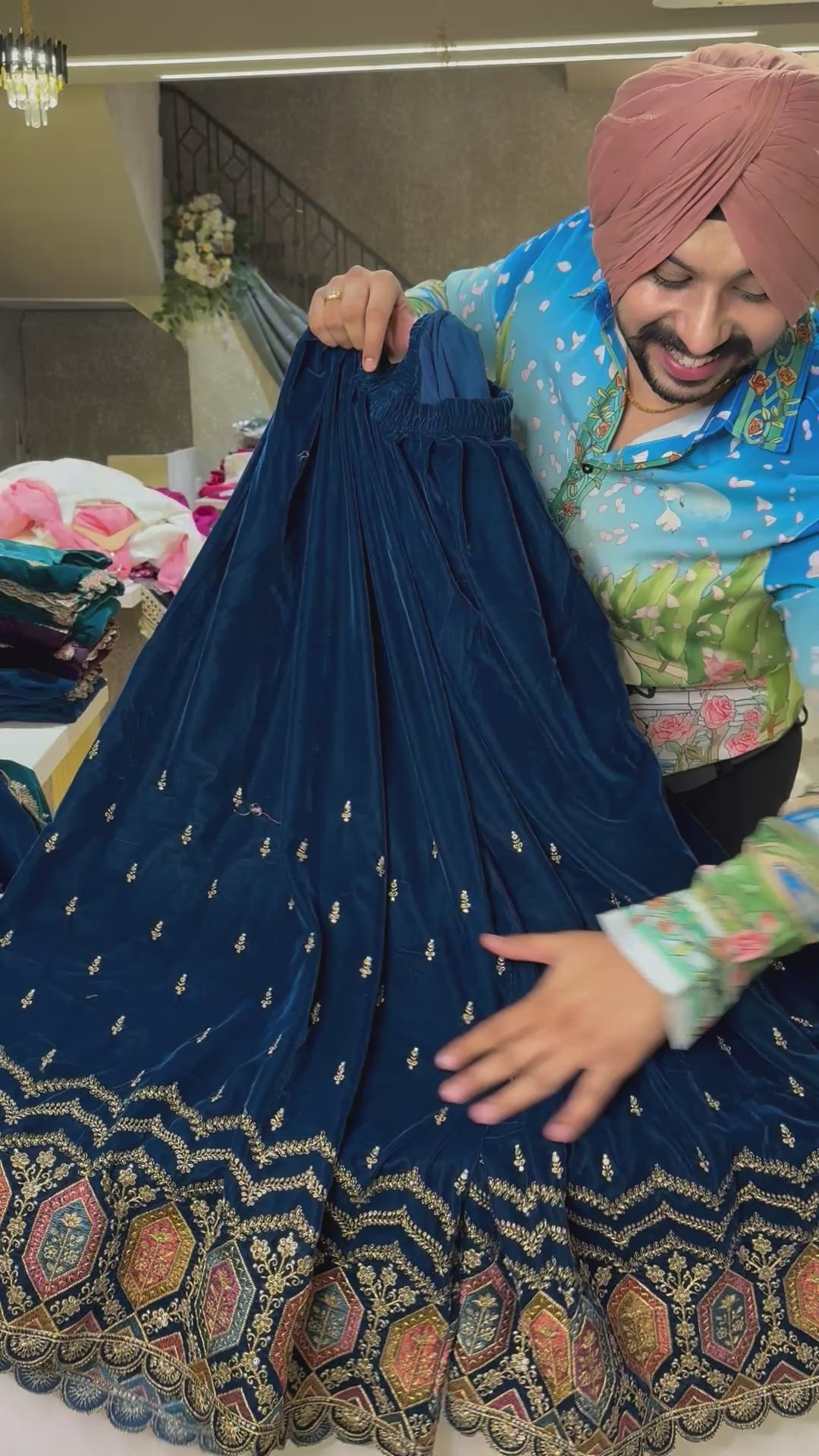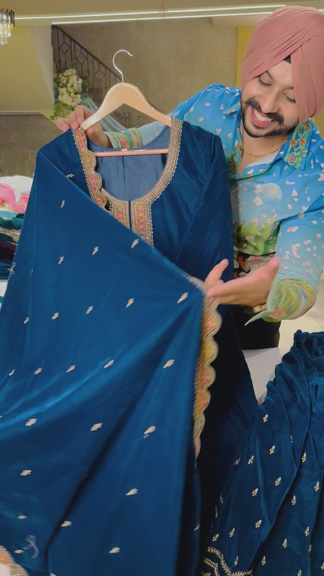 Blue Velvet heavy embroidered Full Flair Sharara suit
