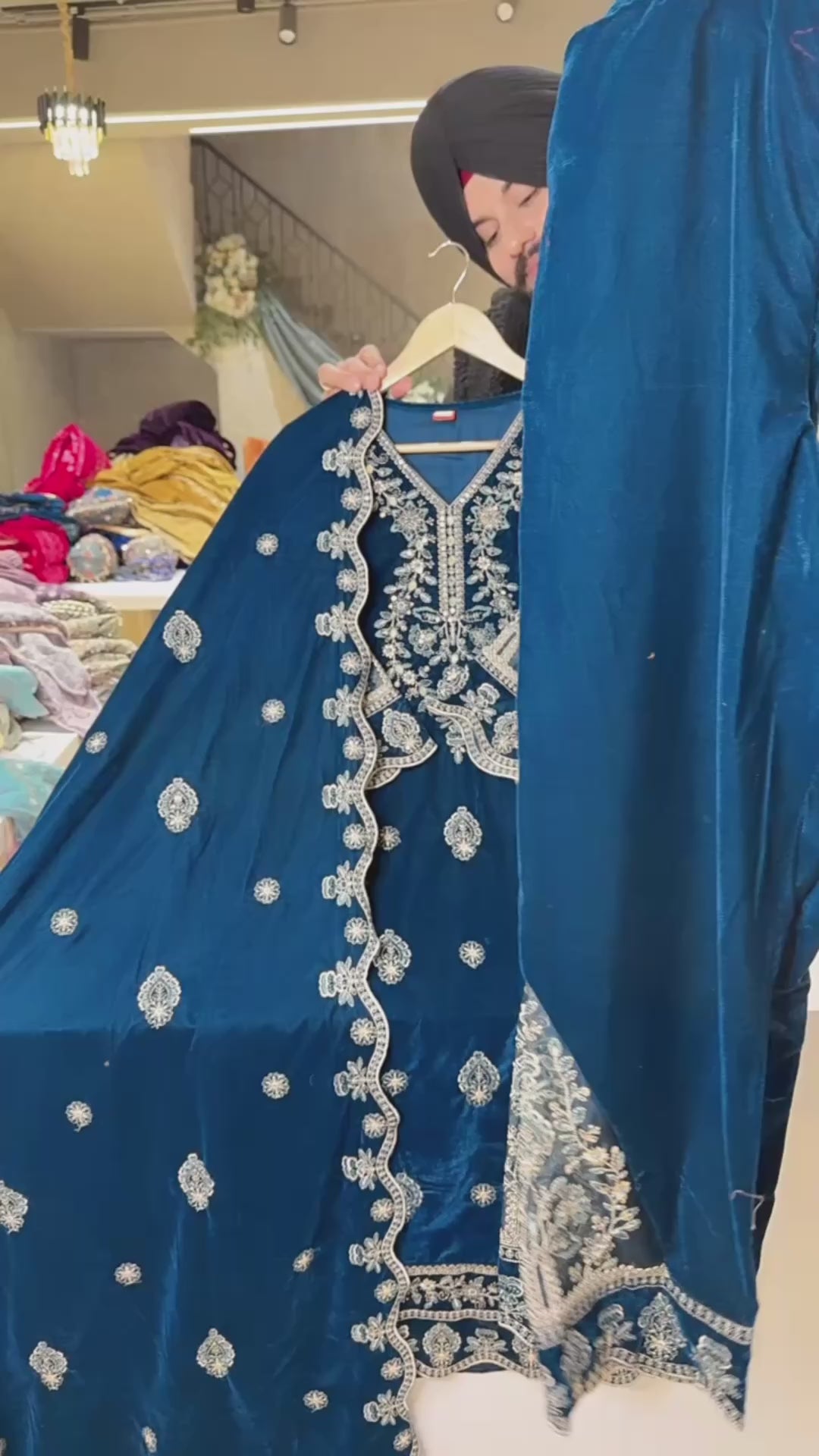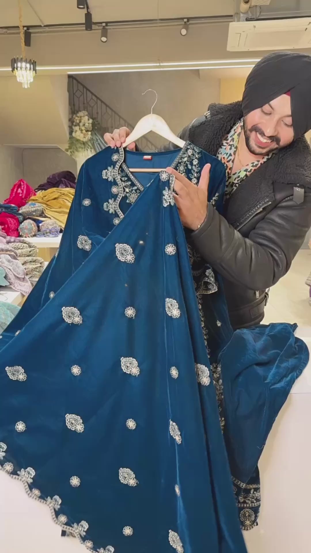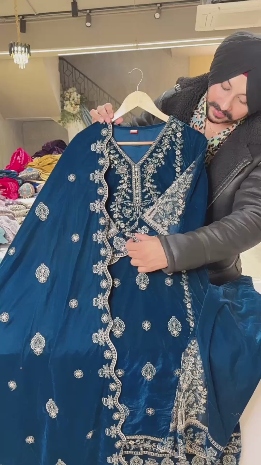 Blue Velvet Pakistani Suits with Designer Sleeves & pants