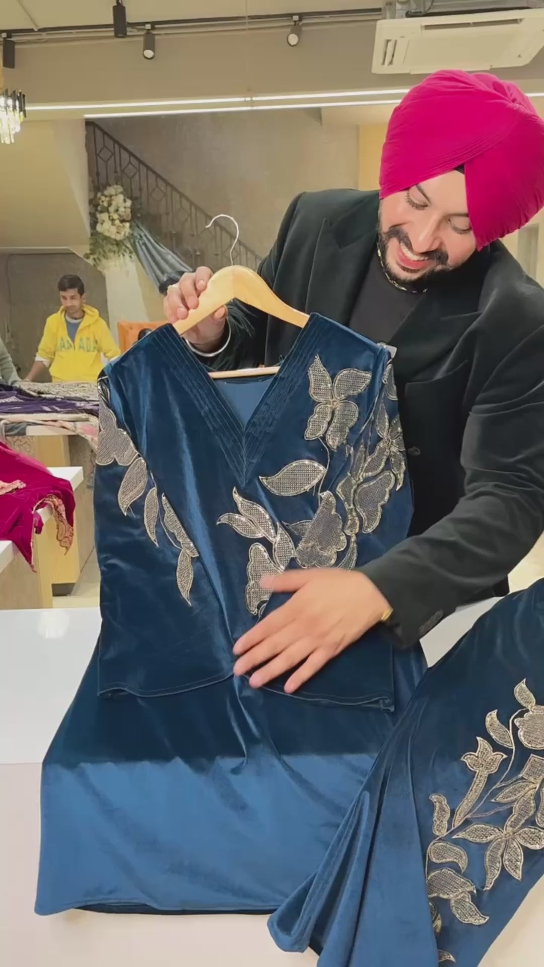 Ink Blue Velvet Pakistani Fully Stretchable Sequence work Bell Bottom Coord set