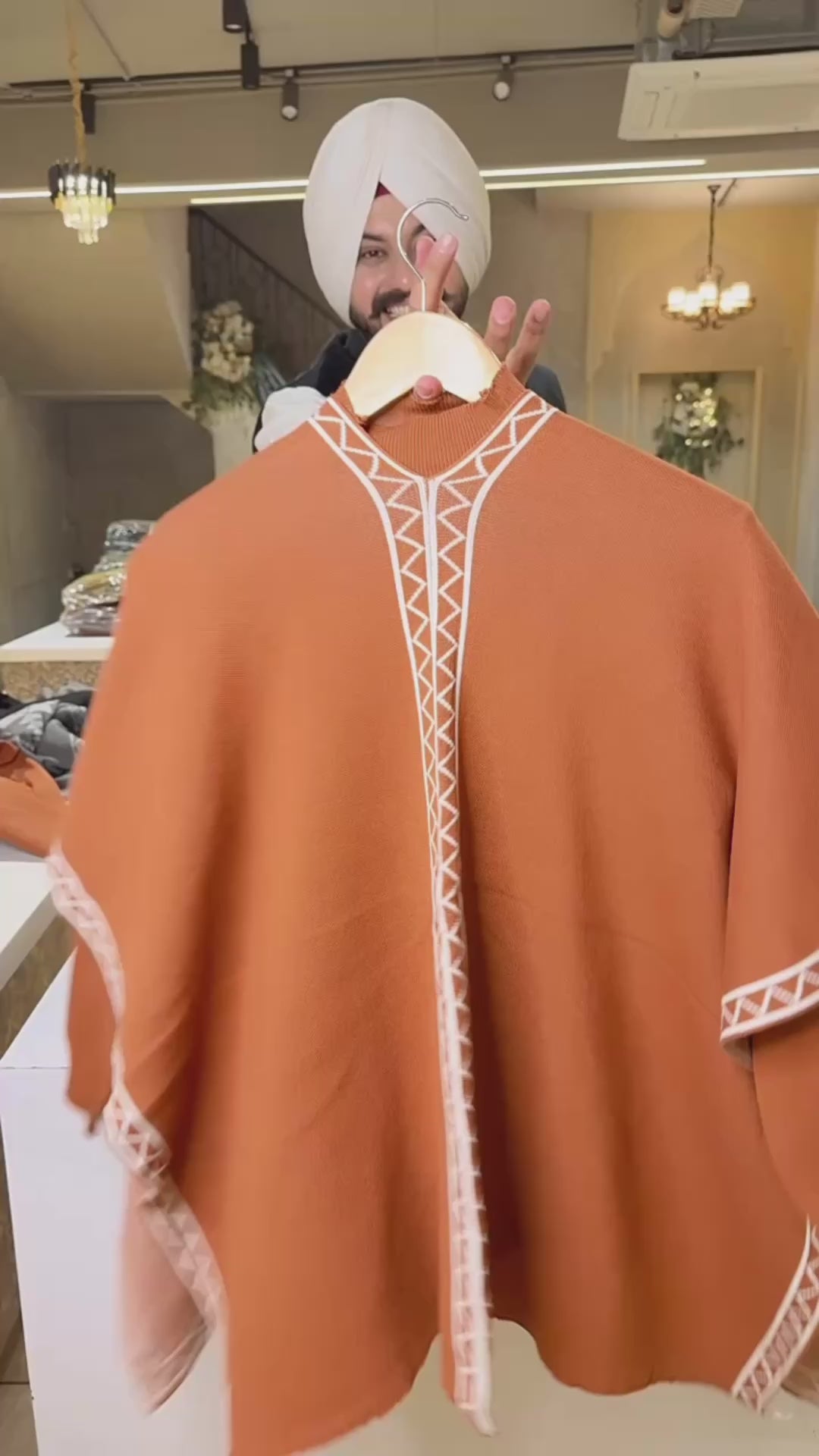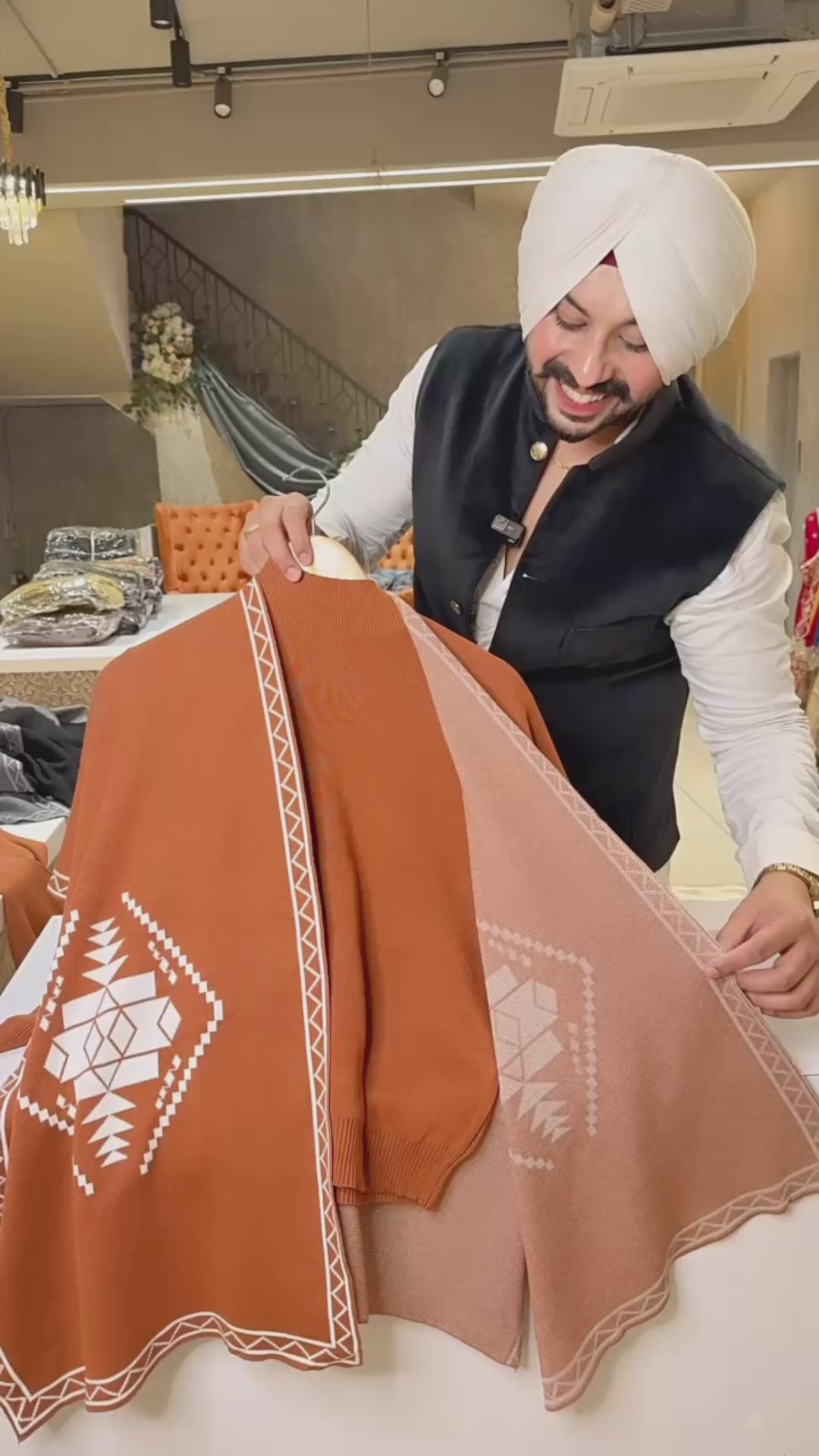 Tan brown Imported Woolen High Neck Coord set with Stylish Woolen Cape