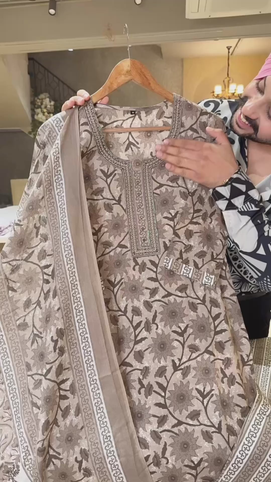 Brown & Biege Pure Cotton Office Wear suit with Beautiful Duppata
