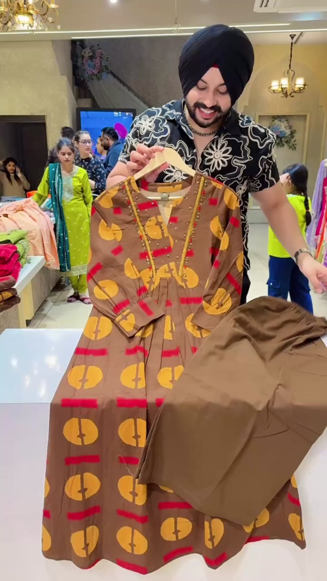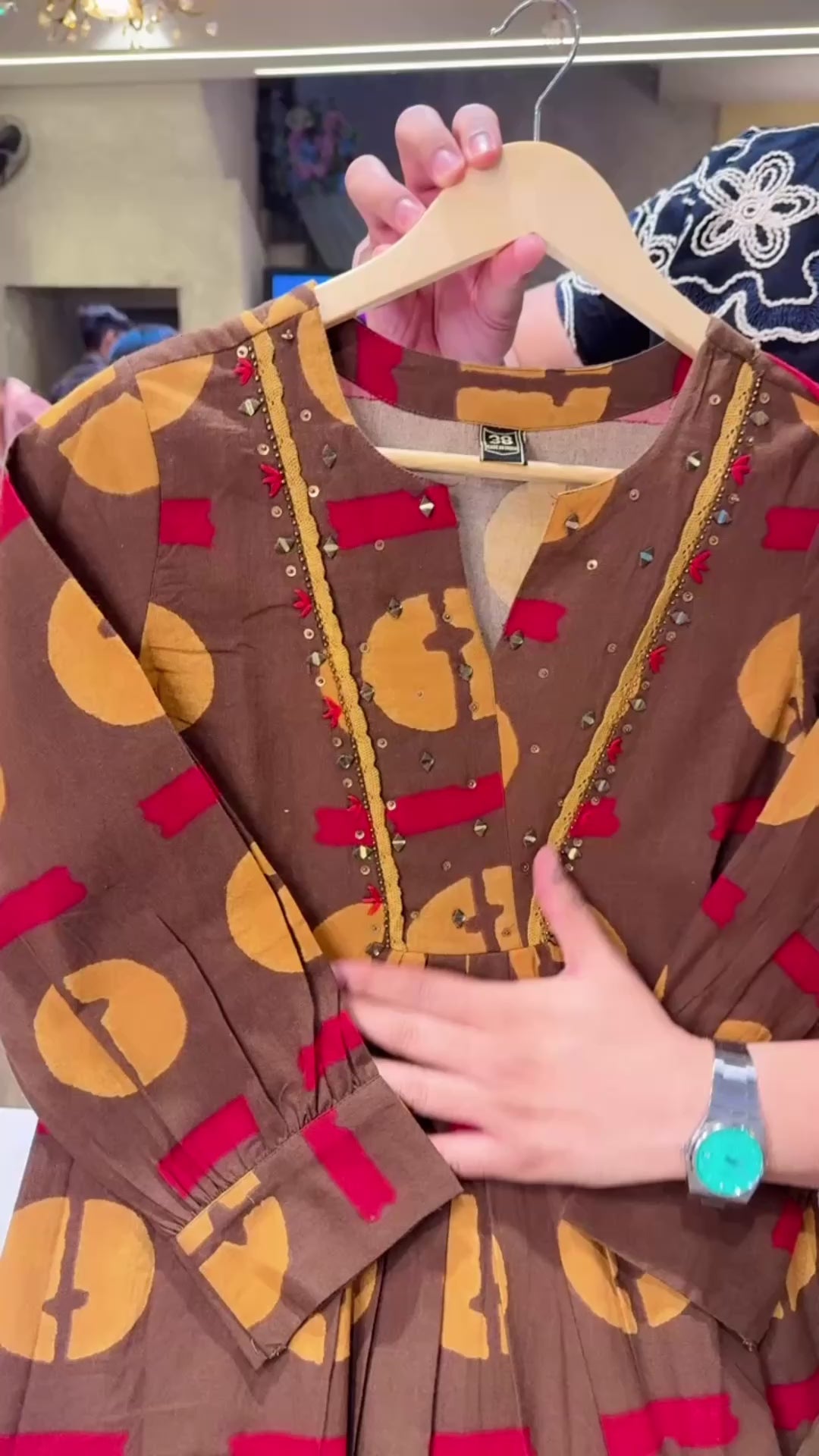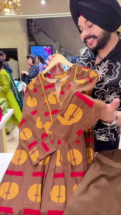 Brown Colour Soft Khaadi A-line Long Length Coord Set with Hand embroidery Work on neck