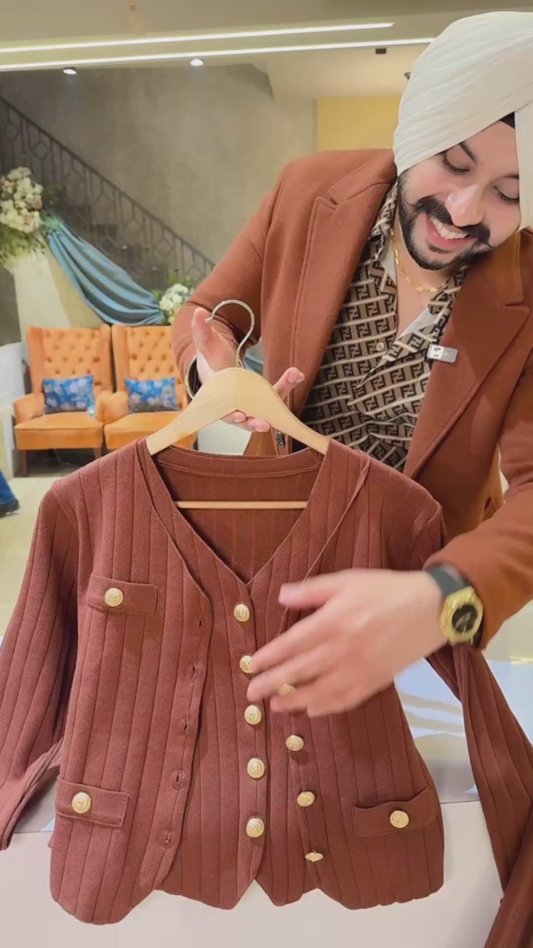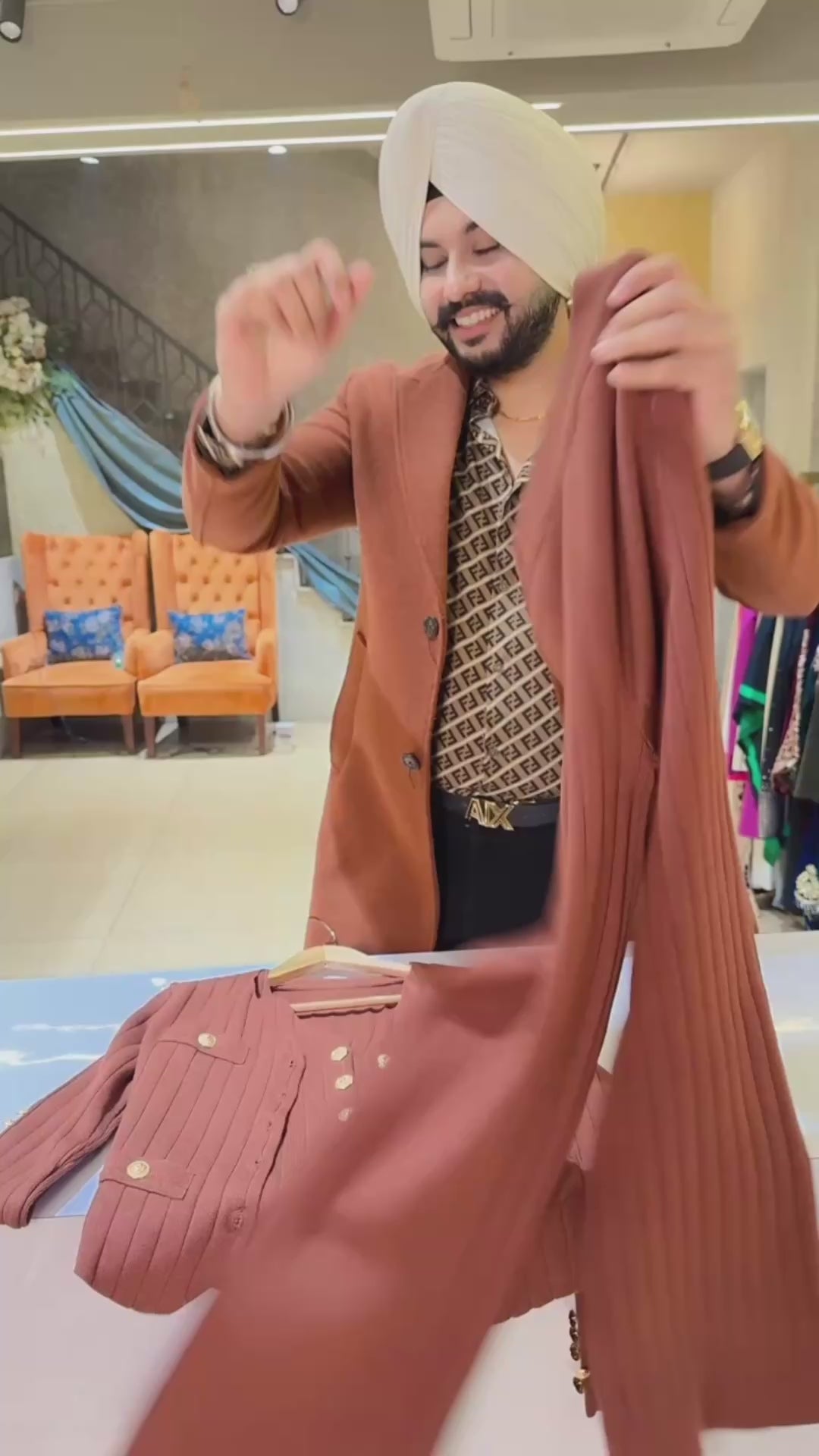 Tan Brown Imported Woolen Coord set with Woolen Jacket