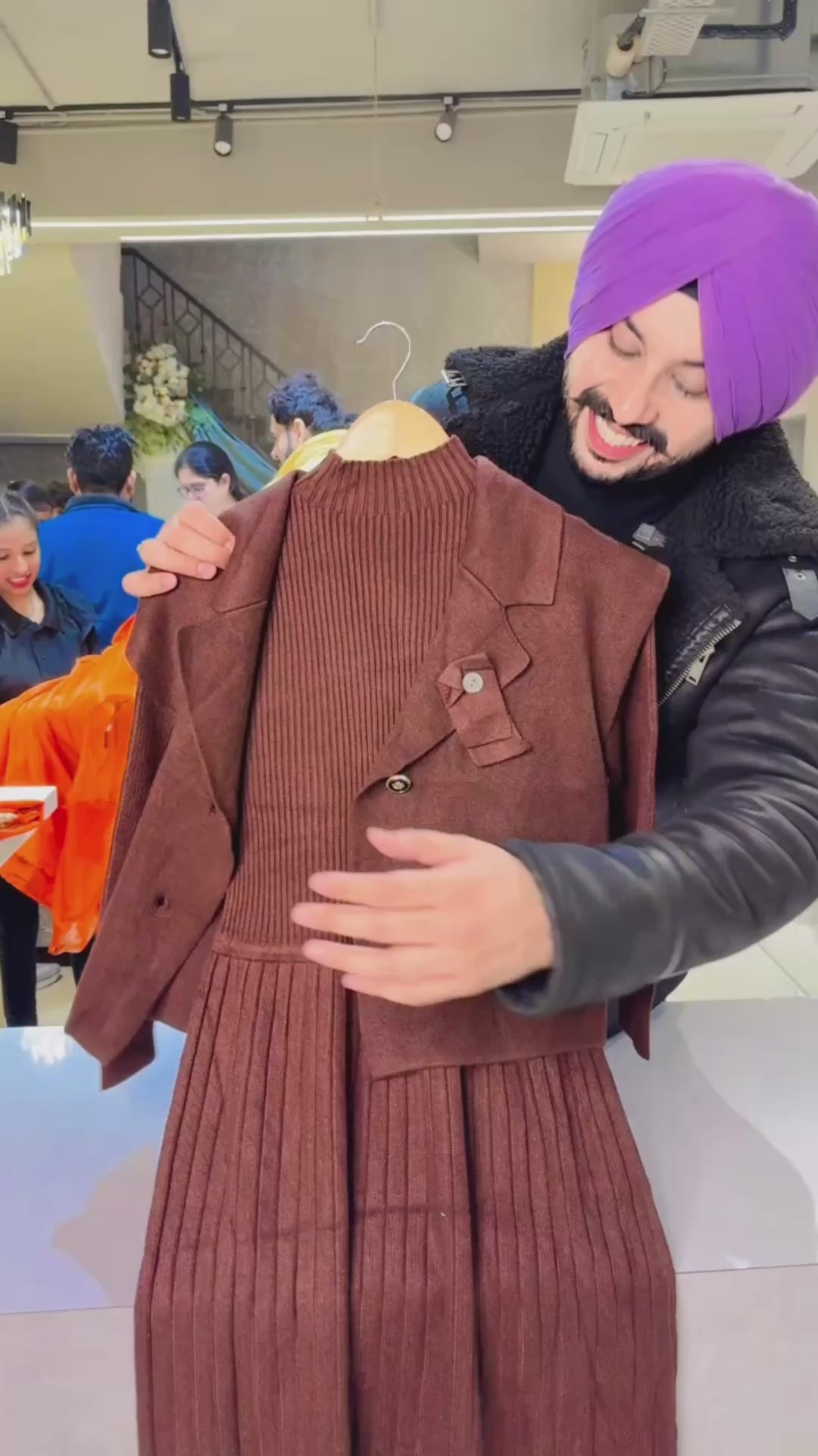 Coffee Imported Woolen Knee Length Dress with Stylish woolen jacket
