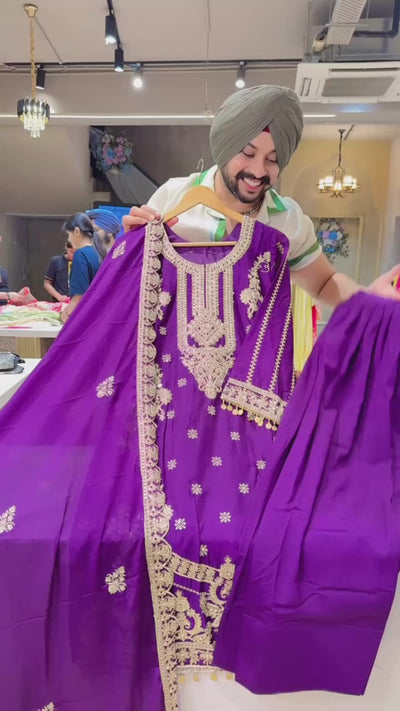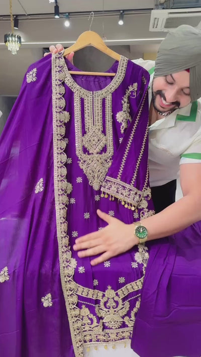 Chinon Heavy Embroidered Farshi Salwar Suit with with Beautiful Embroidered Duppata