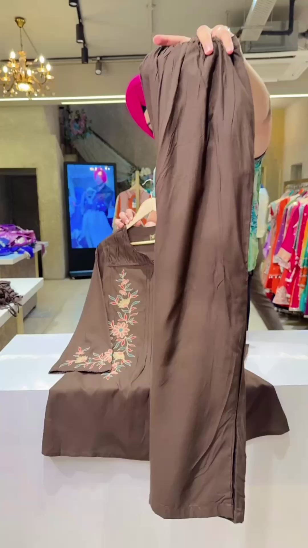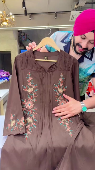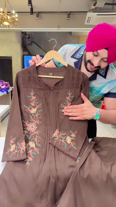 Chocolate Brown Premium Rayon Embroidered Semiformal Coord set