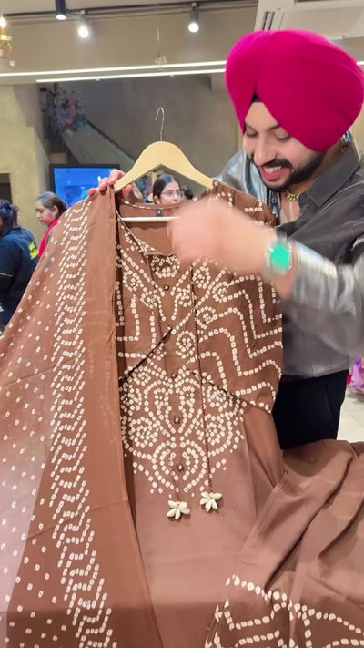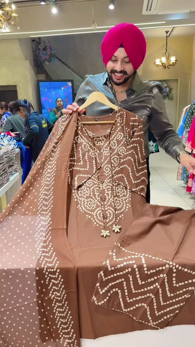 Chocolate Brown Soft Cotton Bandhej print office Wear cotton Suit