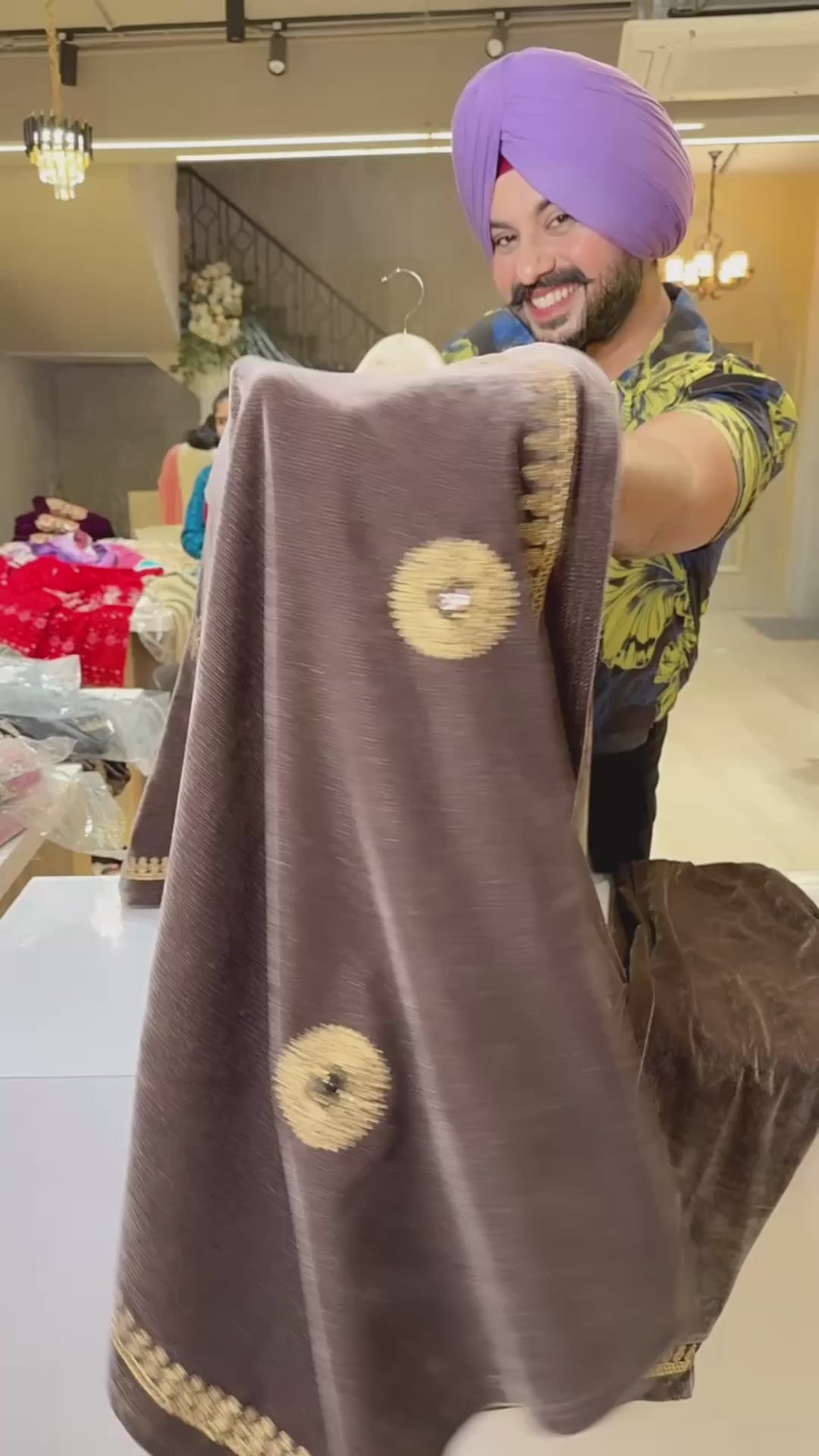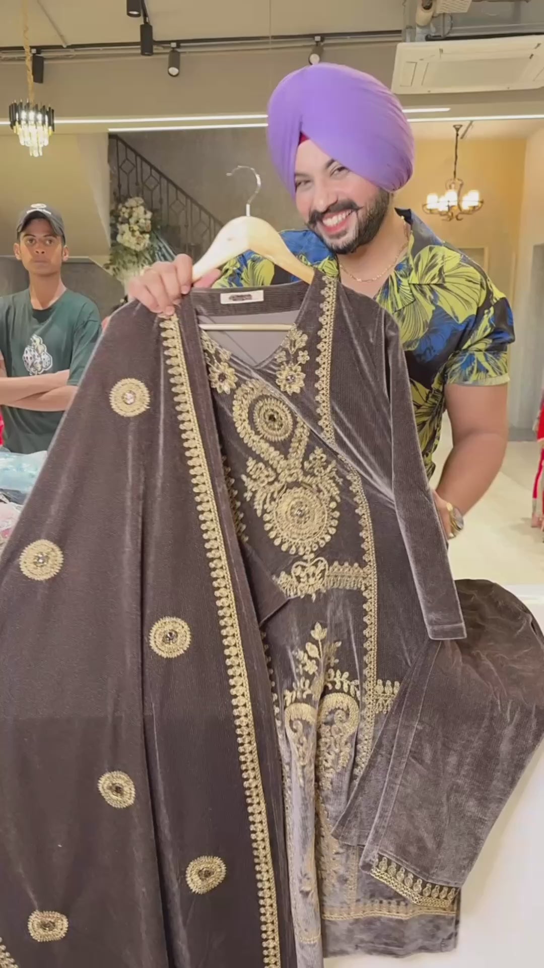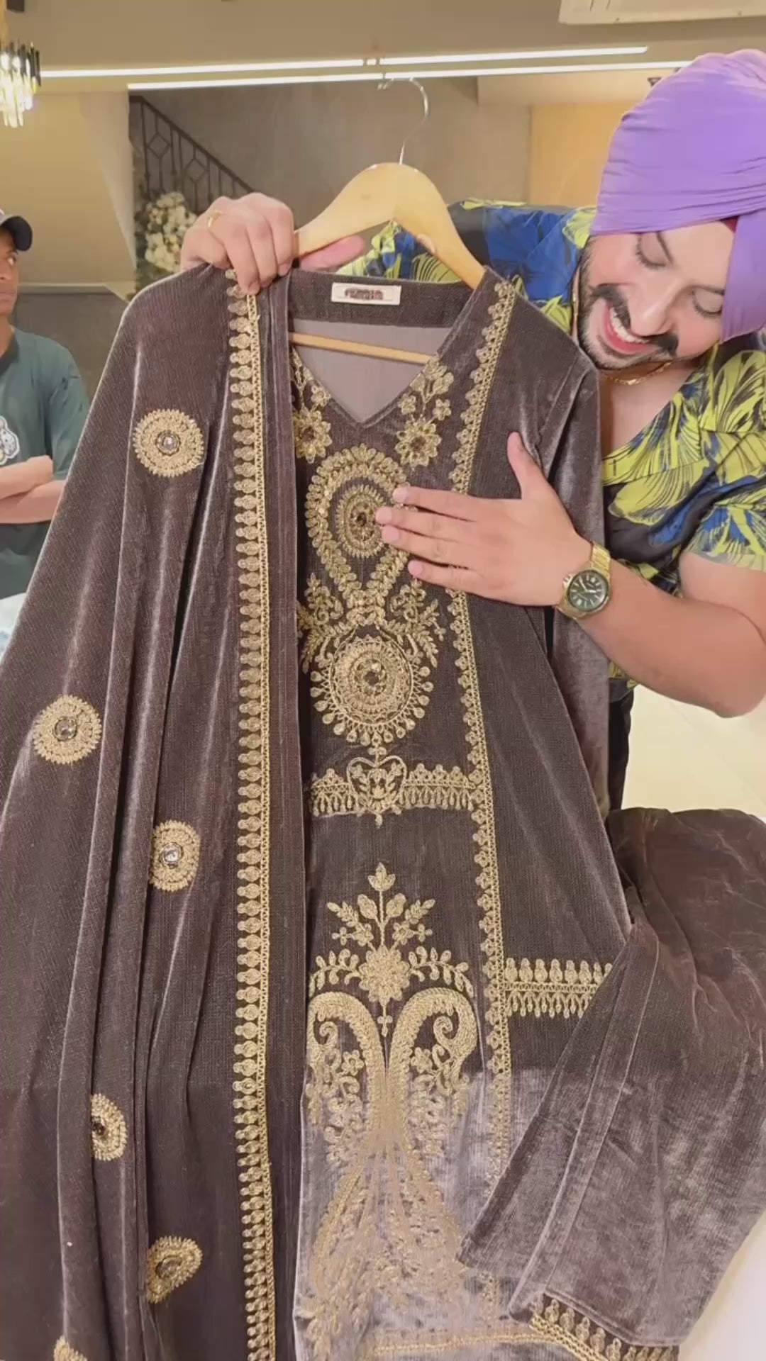 Chocolate brown cotrise Velvet Strechable Straight Heavy embroidered Suit
