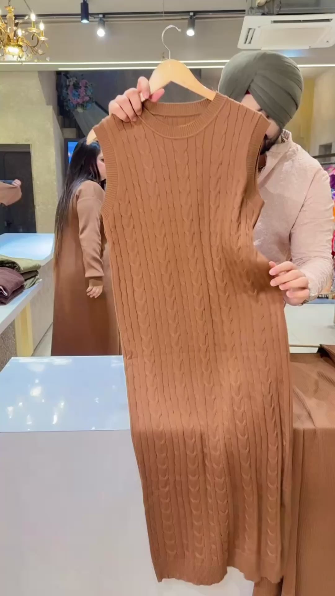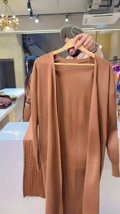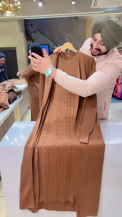 Tan Colour Imported Stretchable Soft Woolen Dress with Stylish Shrug
