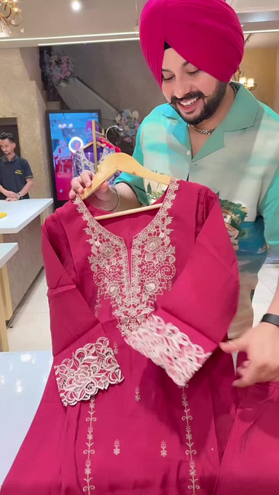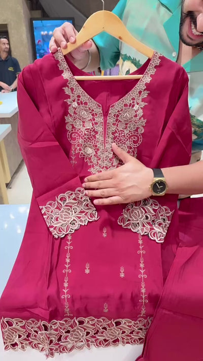 Matt Maroon Soft Silk Semi Formal Embroidered & Cut Work Coord set
