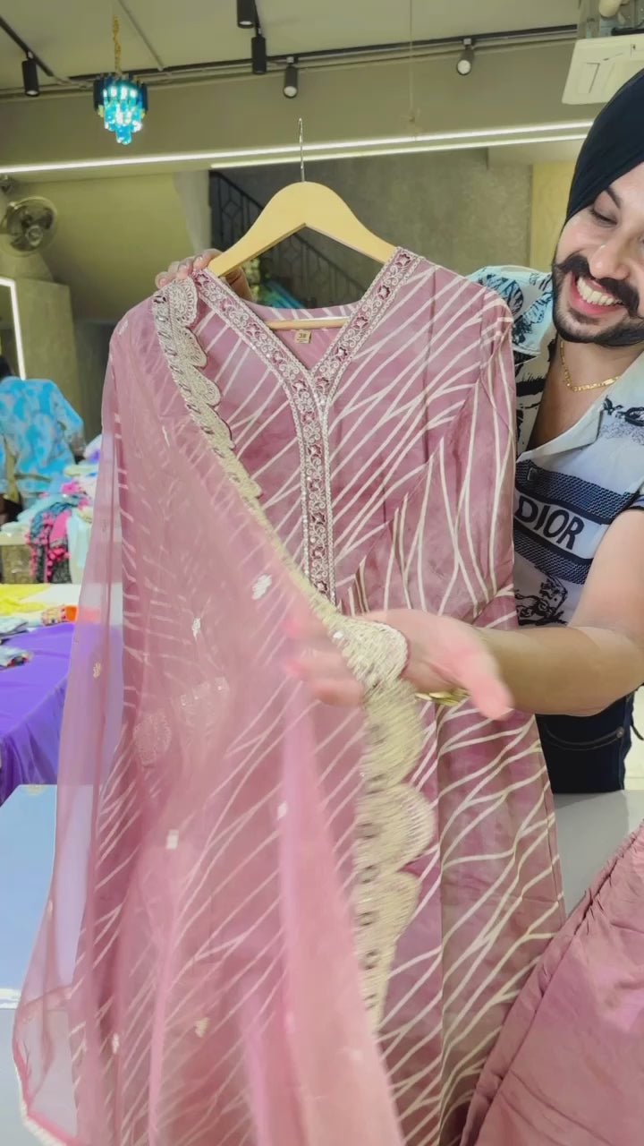 Onion pink Muslin Silk Straight suit with Beautiful Organza Duppata