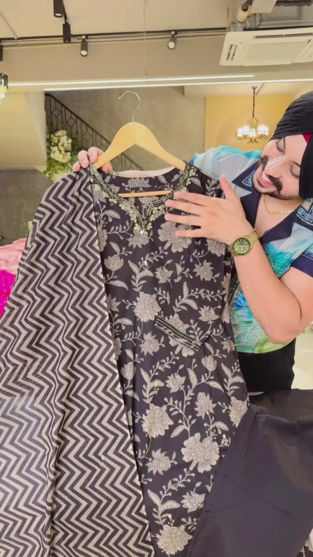 Black Pure cotton Office wear Suit with beautiful Duppata