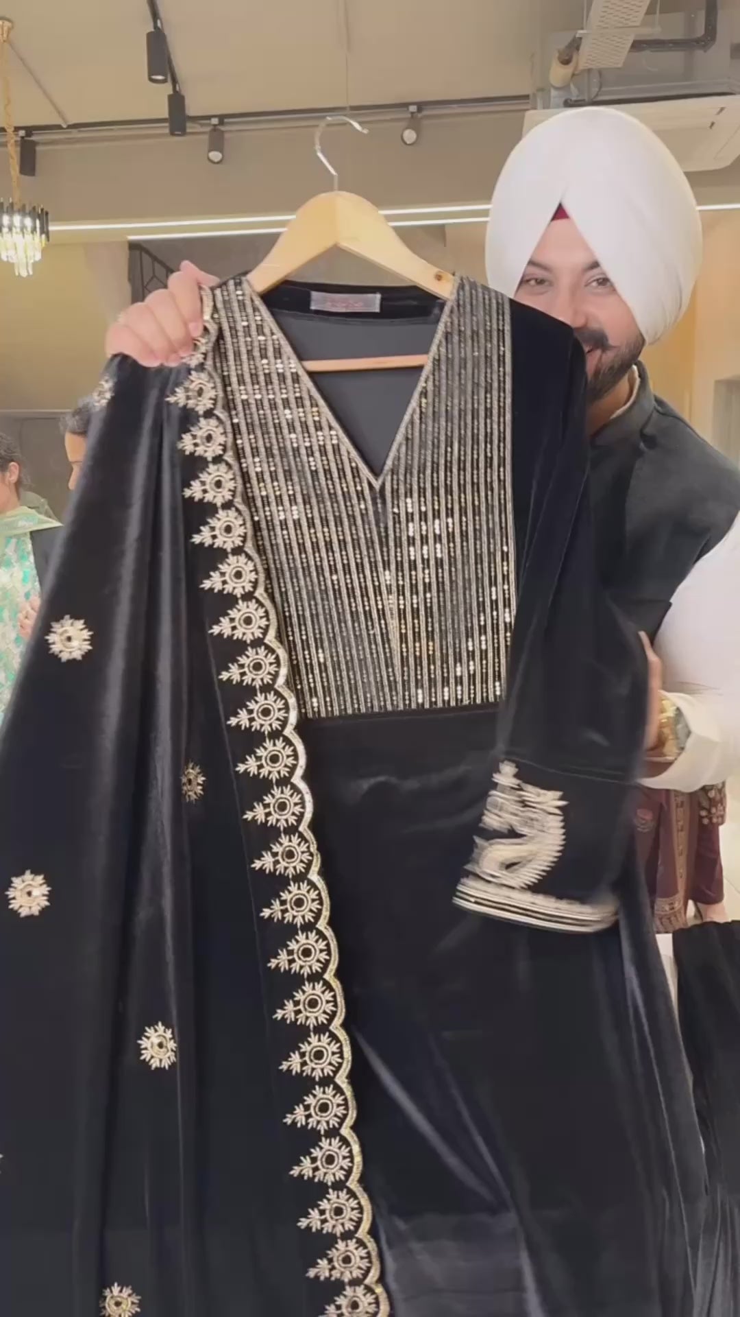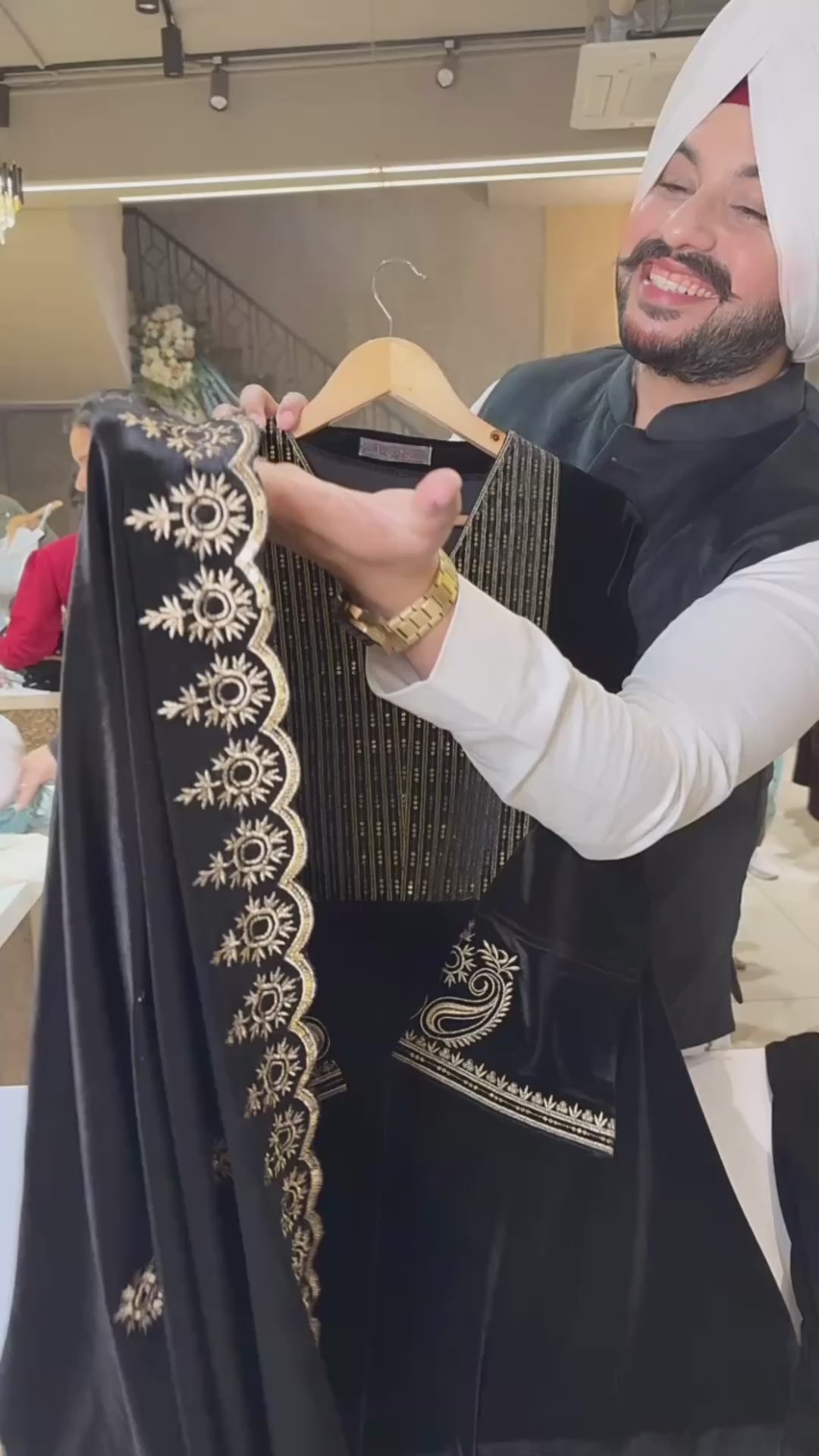Black Heavy velvet Fully Strechable embroidered Anarkali Suit