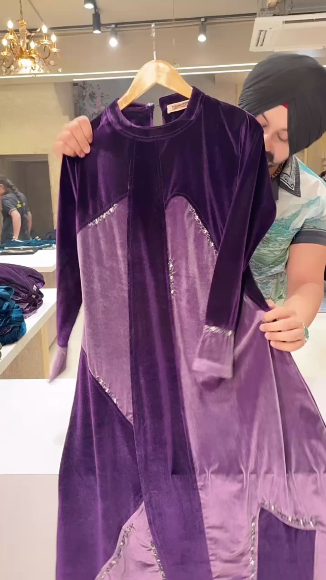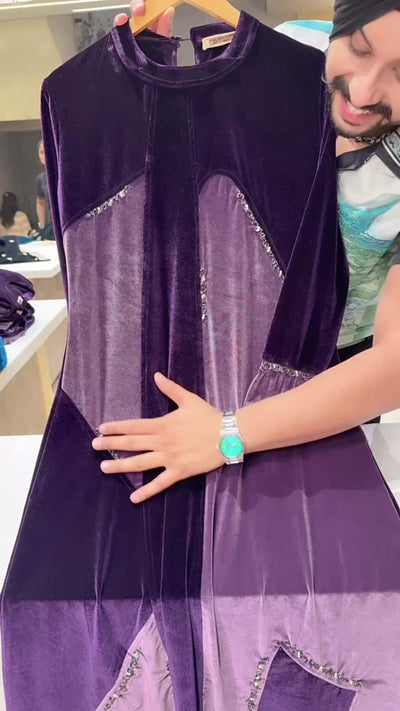 Wine Premium Stretchable Velvet Hand Embroidered Party Wear Dress