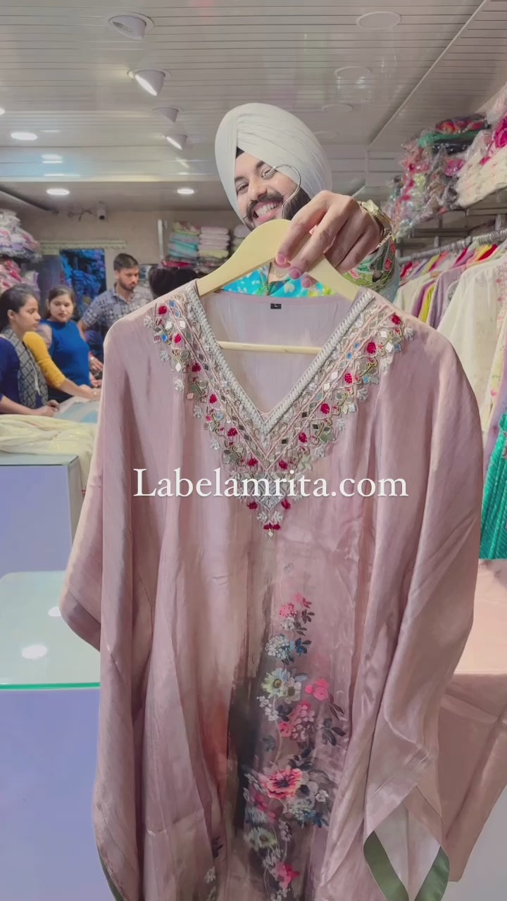 Cheeku premium crepe Kaftan Set With hand work on neck