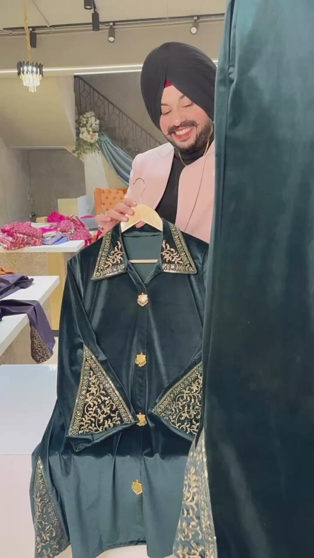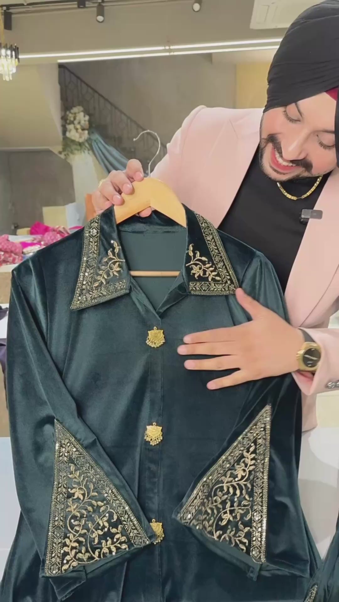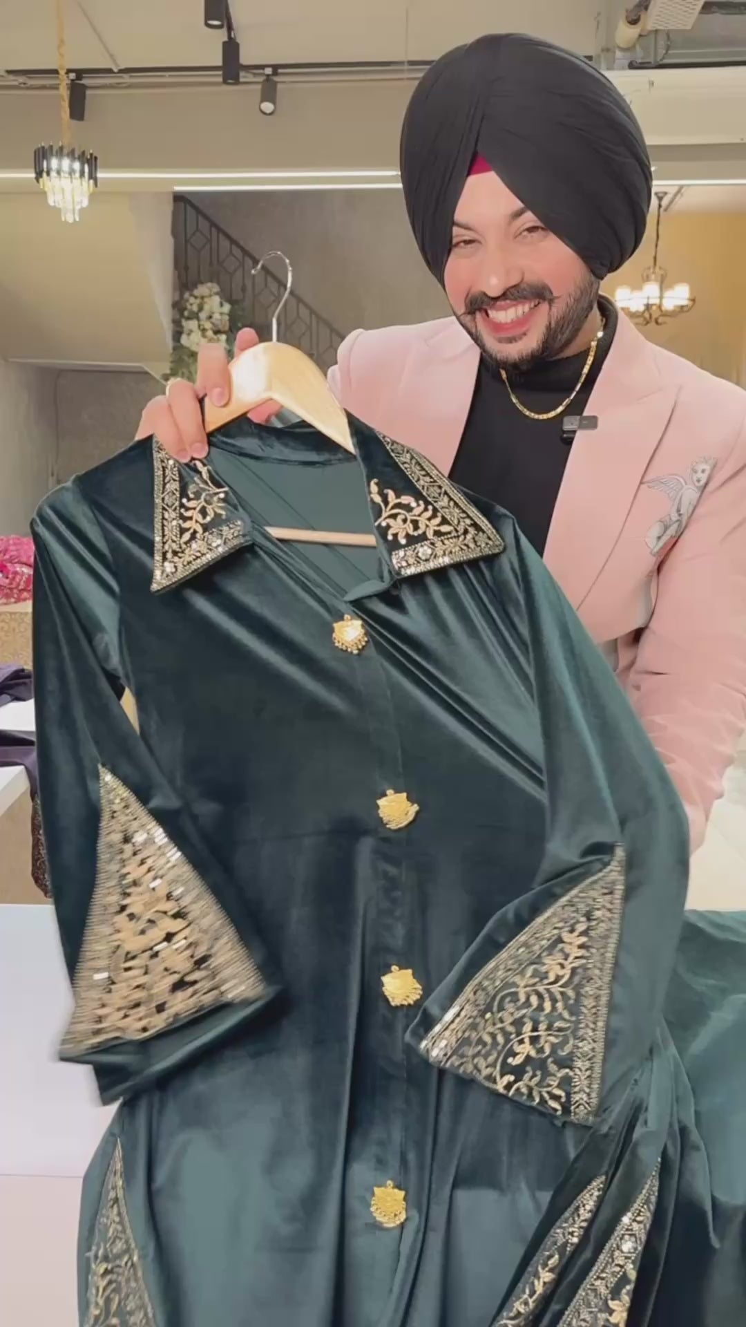 Rama Green Heavy Strechable Velvet Collar neck Bell Bottom Coord set