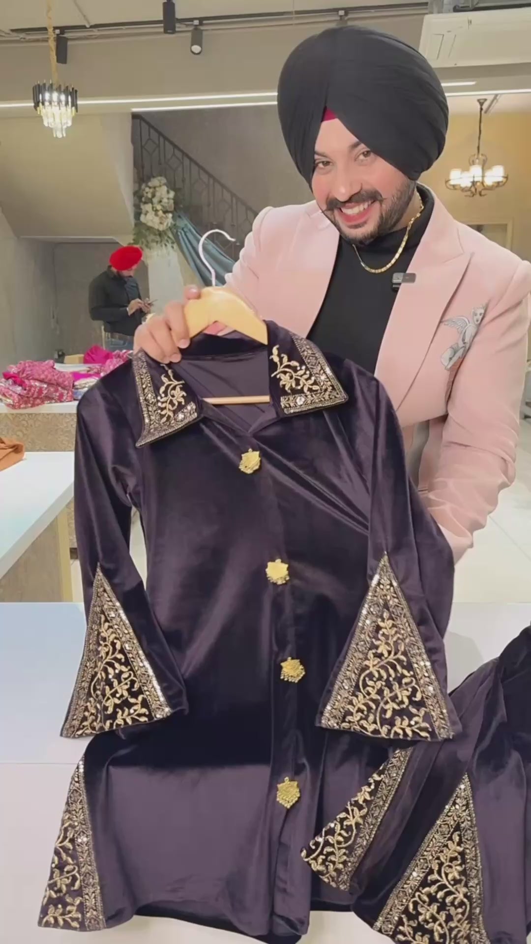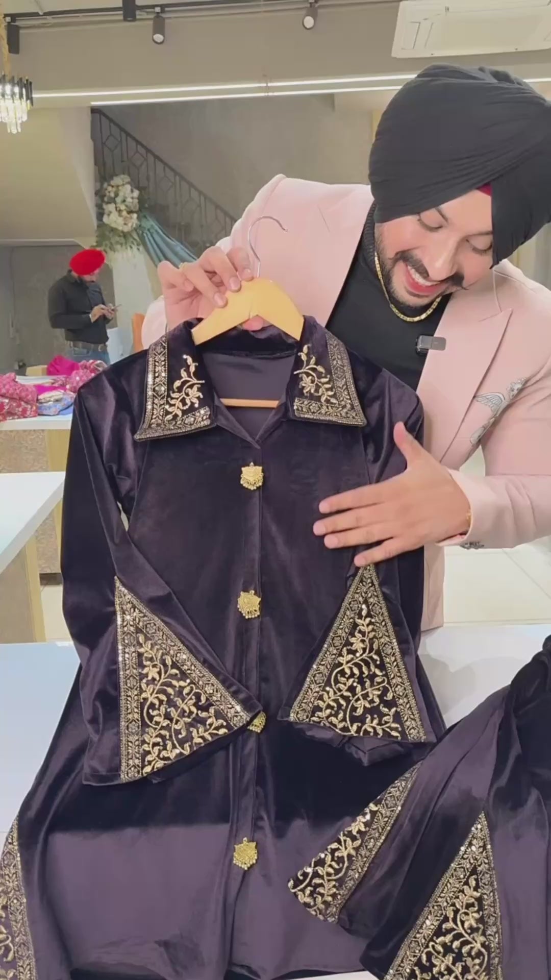 Dark Wine Heavy Strechable Velvet Collar neck Bell Bottom Coord set