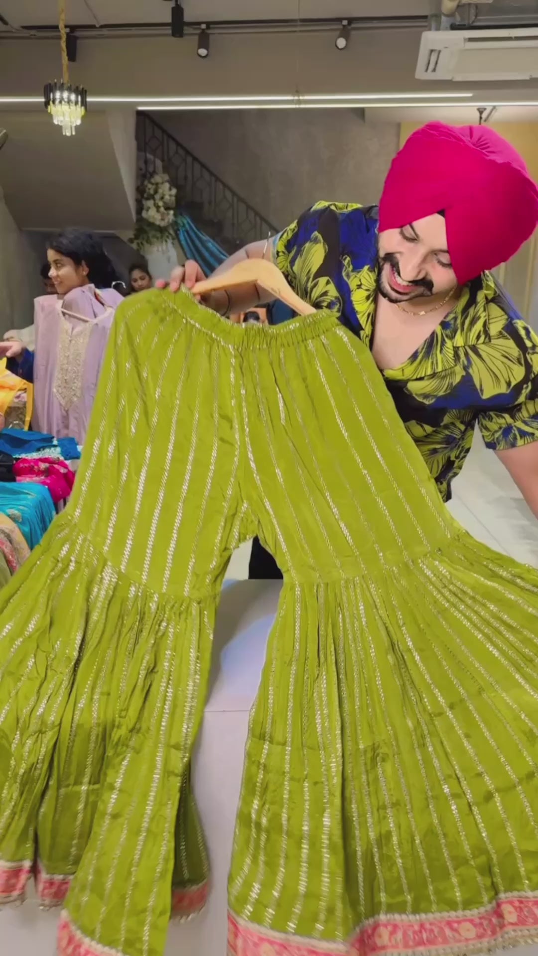 Green Chinon Heavy Embroidered & mirror Pasting Garara Set with beautiful Duppata