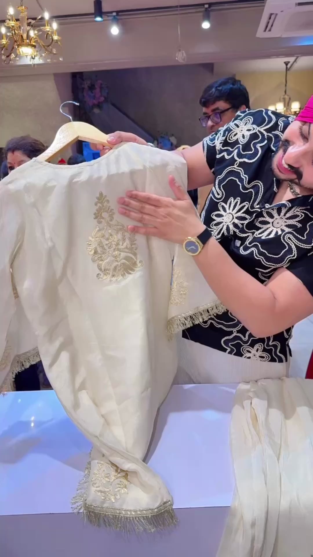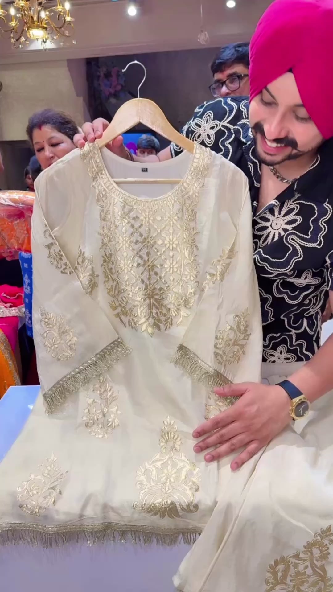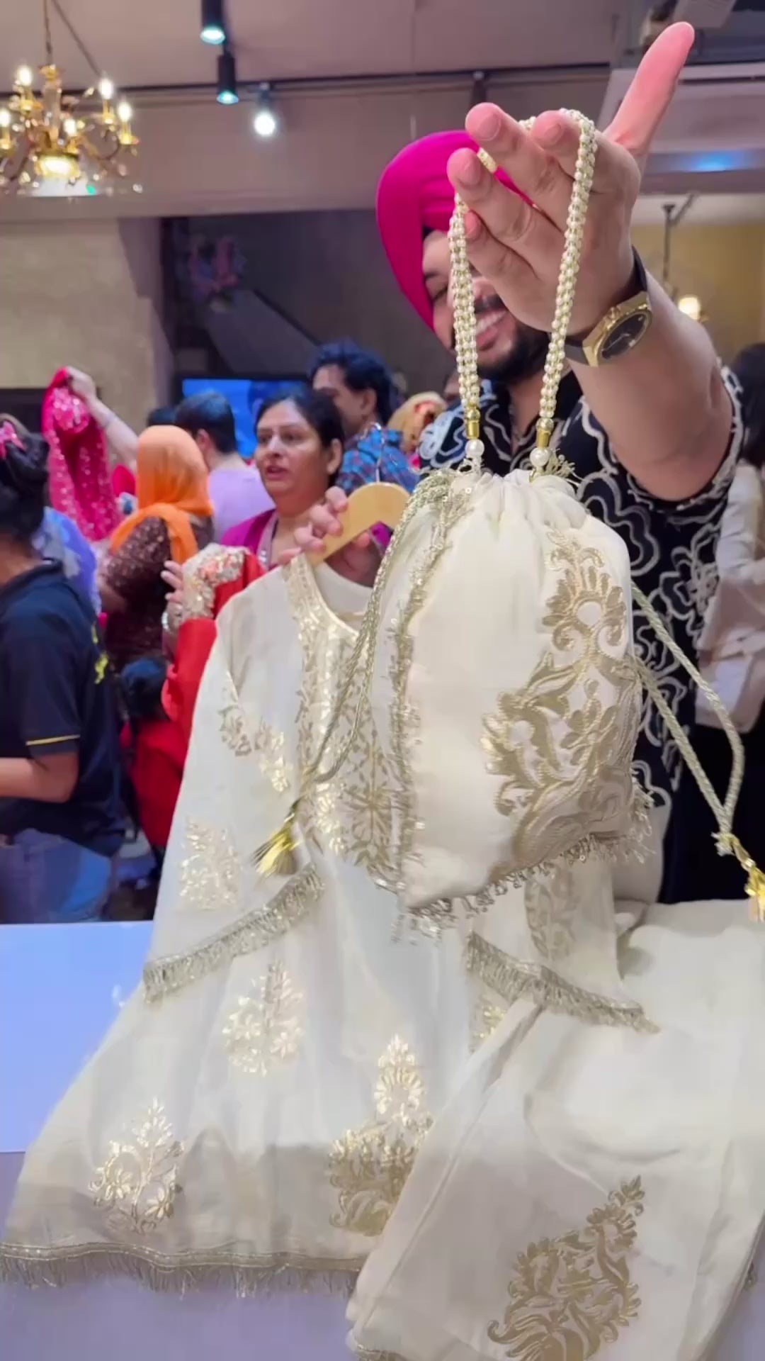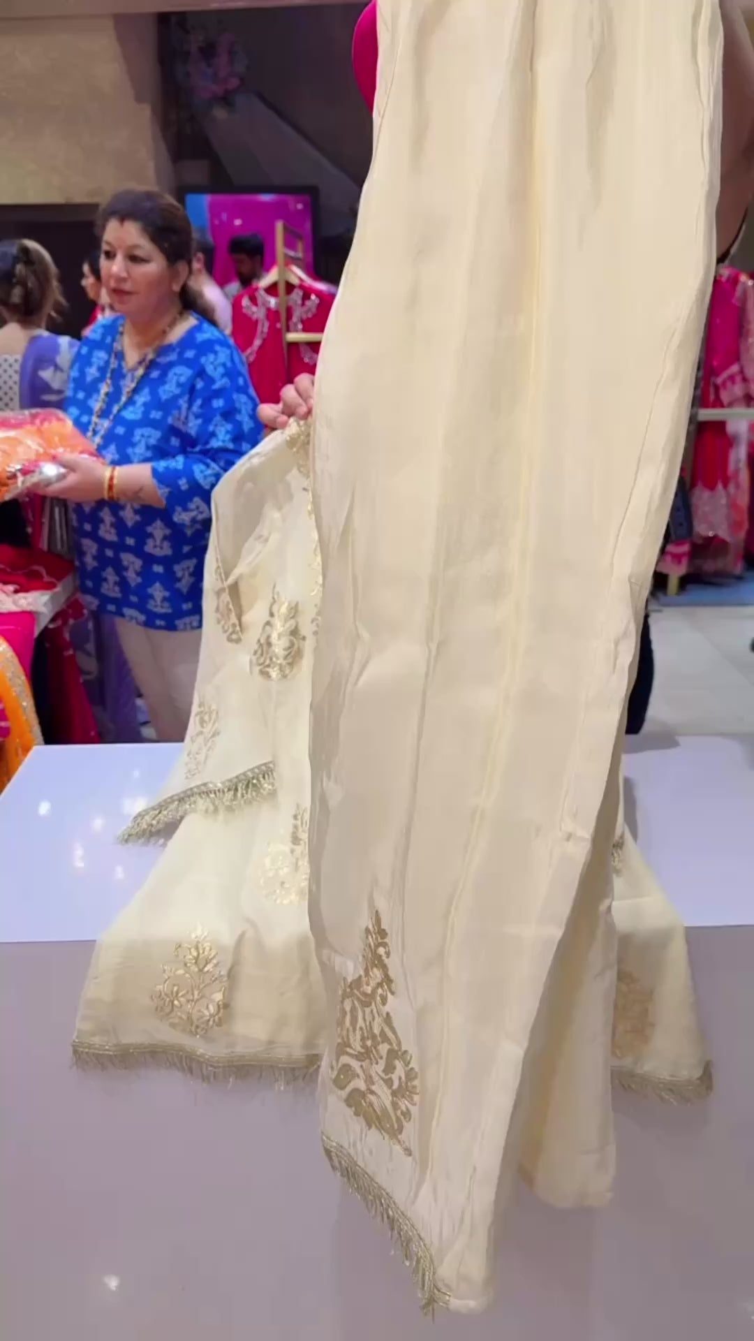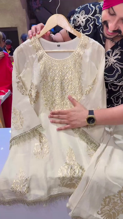 Ivory Gold Shimmer Silk Tissue Heavy Gotta Embroidered Party Wear Coord set with Cute Potli