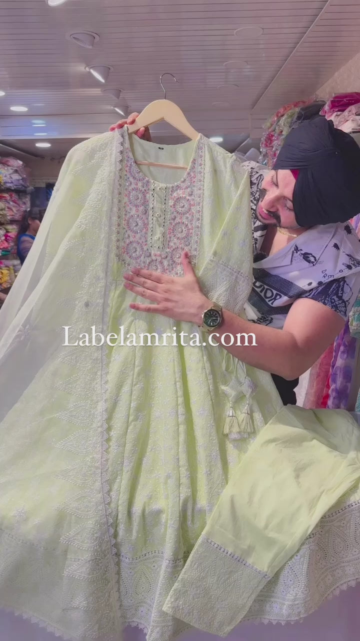 Light green Pure Cotton fully embroidered Anarkali suit with Beautiful Embroidered Organza Duppata