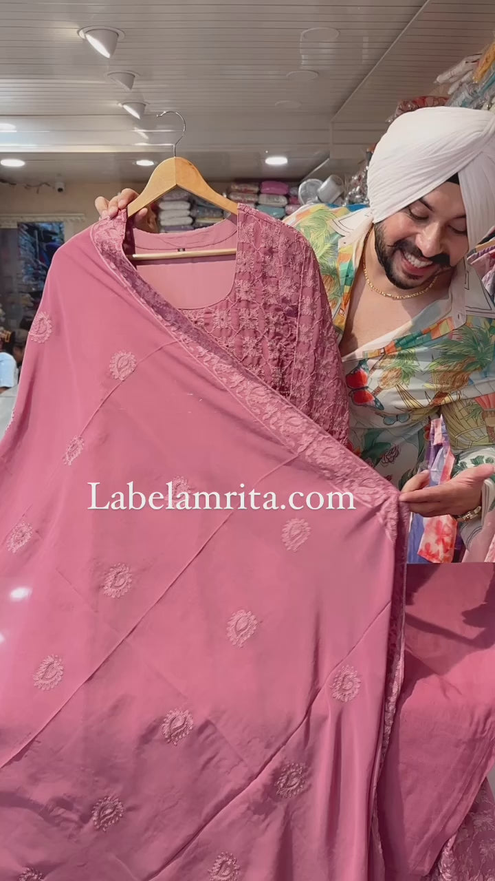 Onion pink Georgette Fully Embroidered Anarkali suit