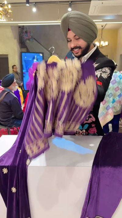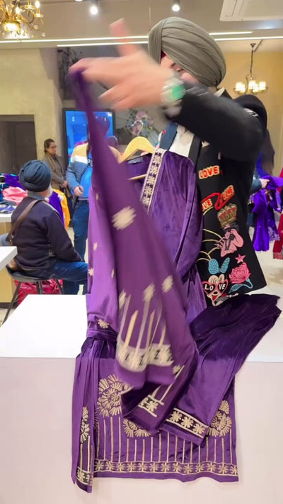 Dark Purple Strechable velvet Party wear Straight Suit with Heavy embroidery Work on border & Duppata