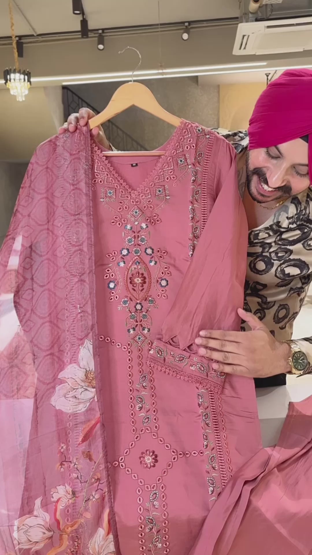 Onion Roman Silk Embroidered Pakistani Suit with Beautiful Duppata