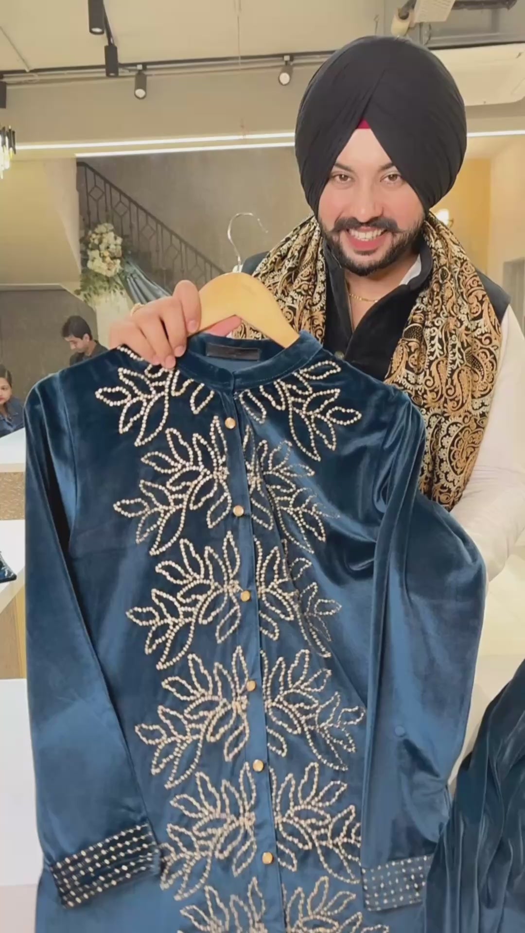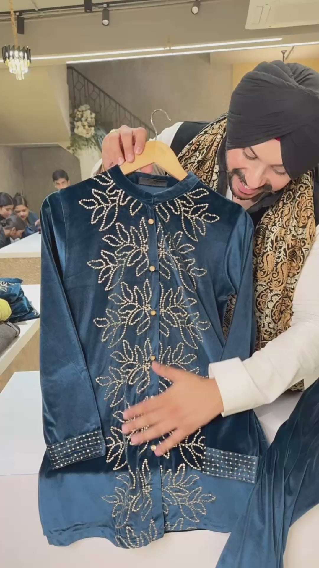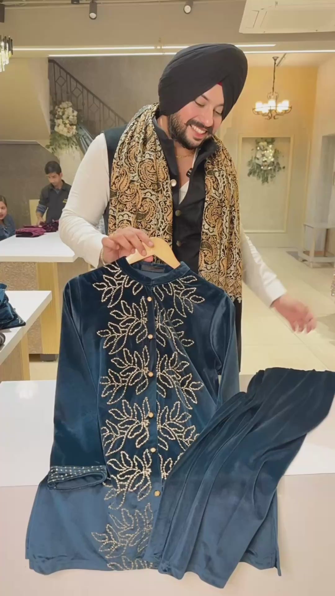 Teel Blue Premium Strechable Velvet Heavy embroidered Coord set