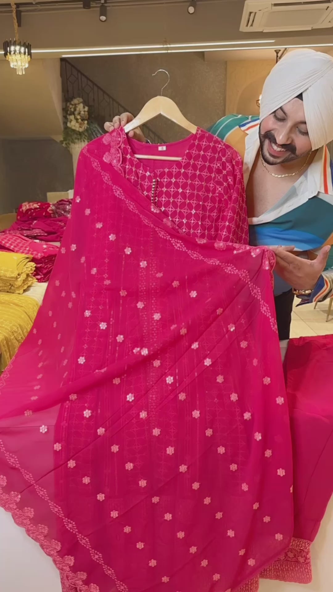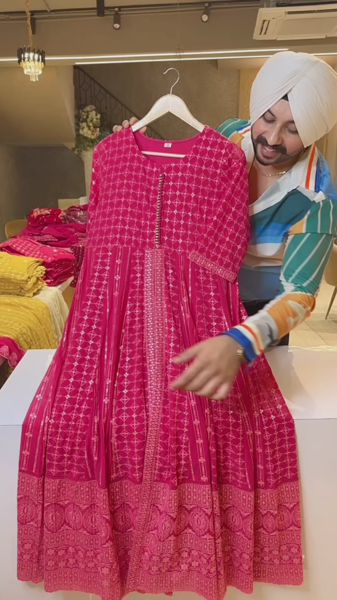 Rani pink Georgette Front slit Fully embroidered Anarkali suit