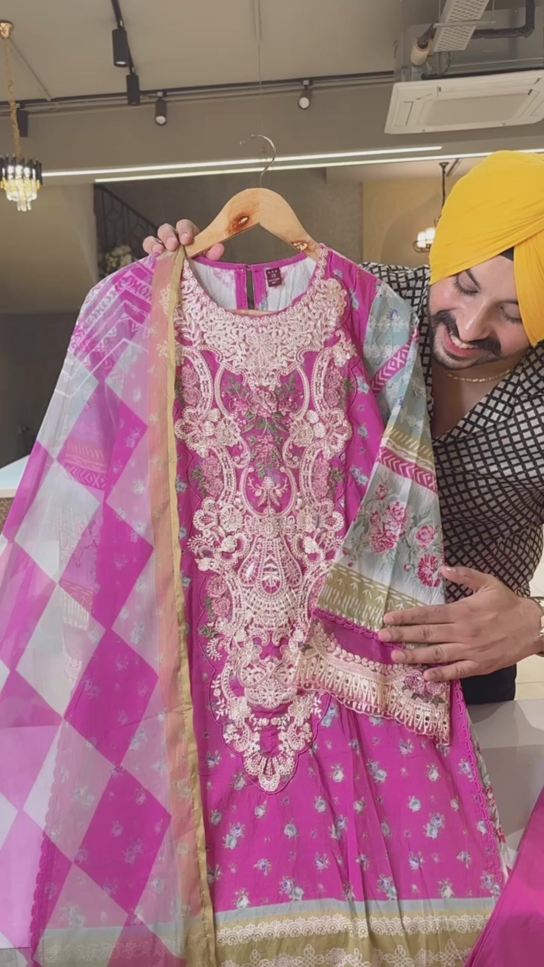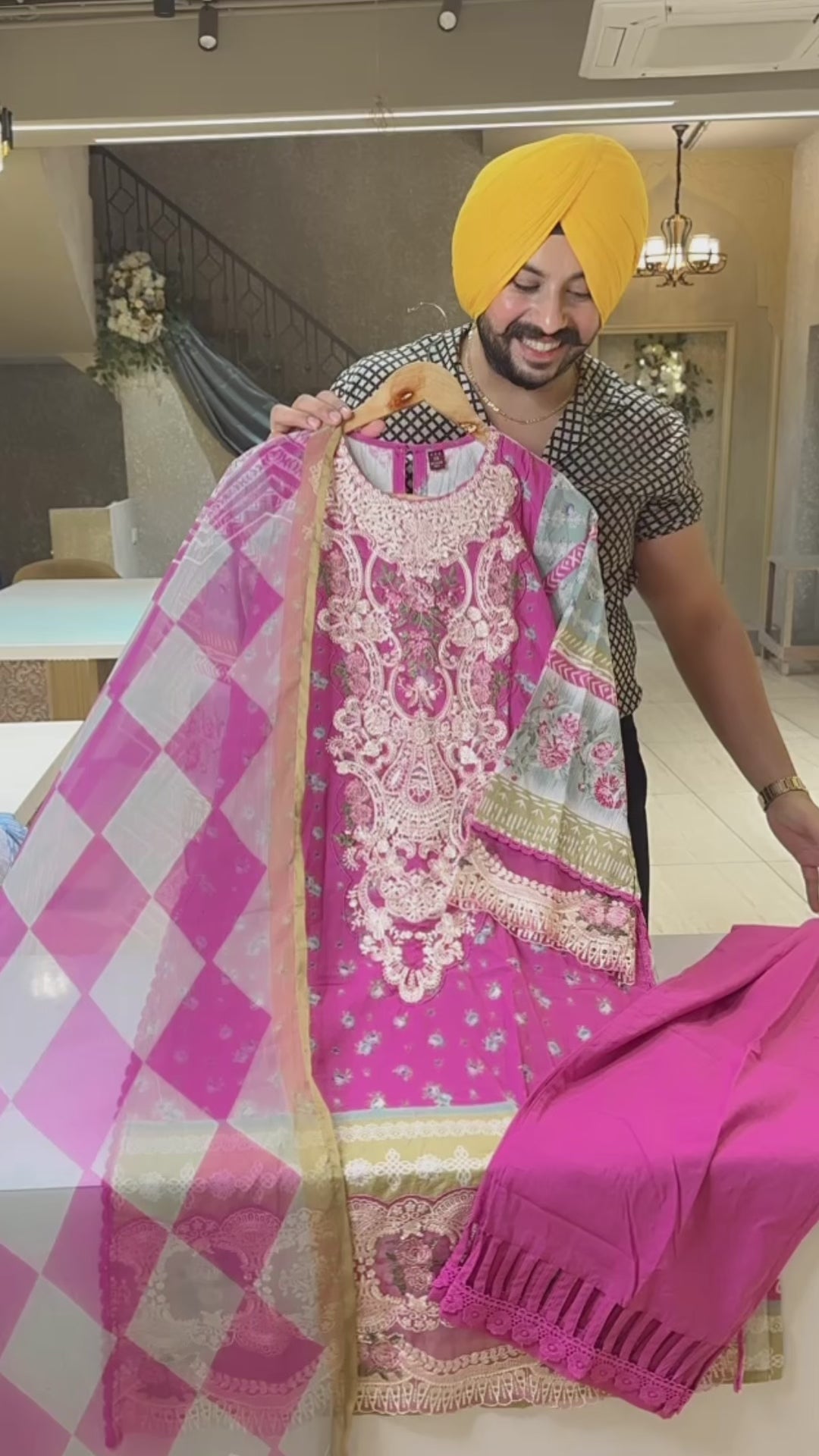 Pink Pure cotton Heavy embroidered Pakistani suit with digital print chiffon Duppata