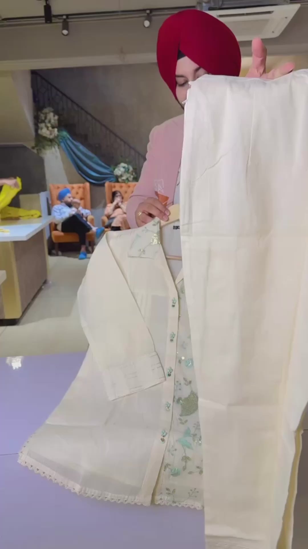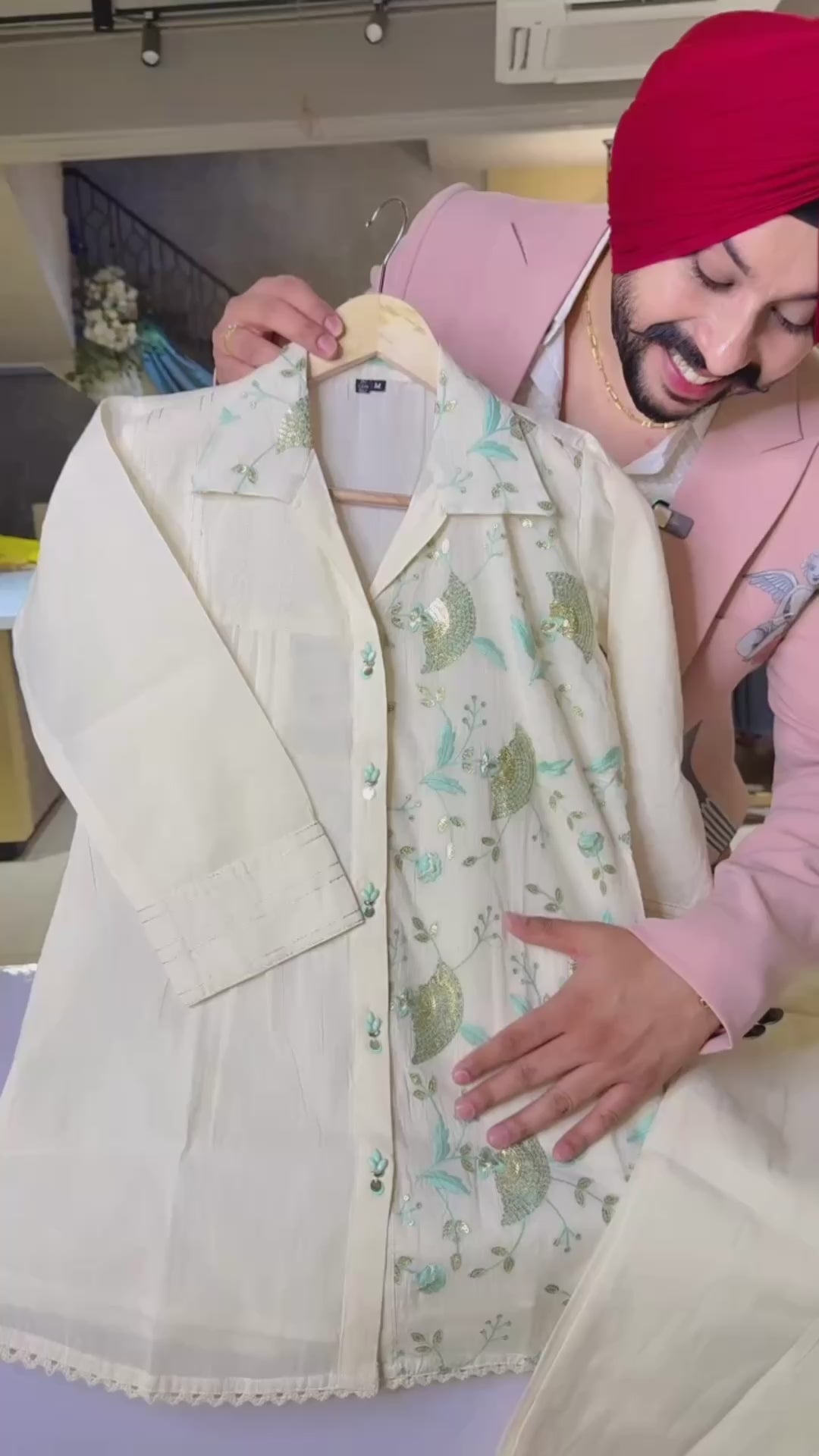 Off white & SeaBlue Collar Neck Summerish Embroidered Coord set