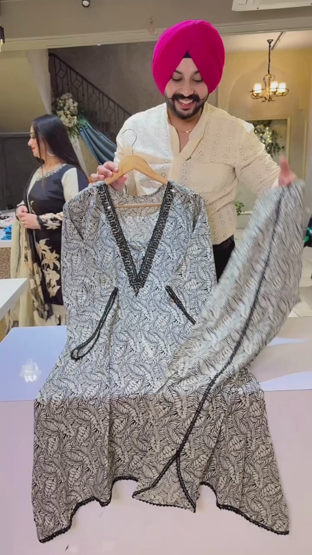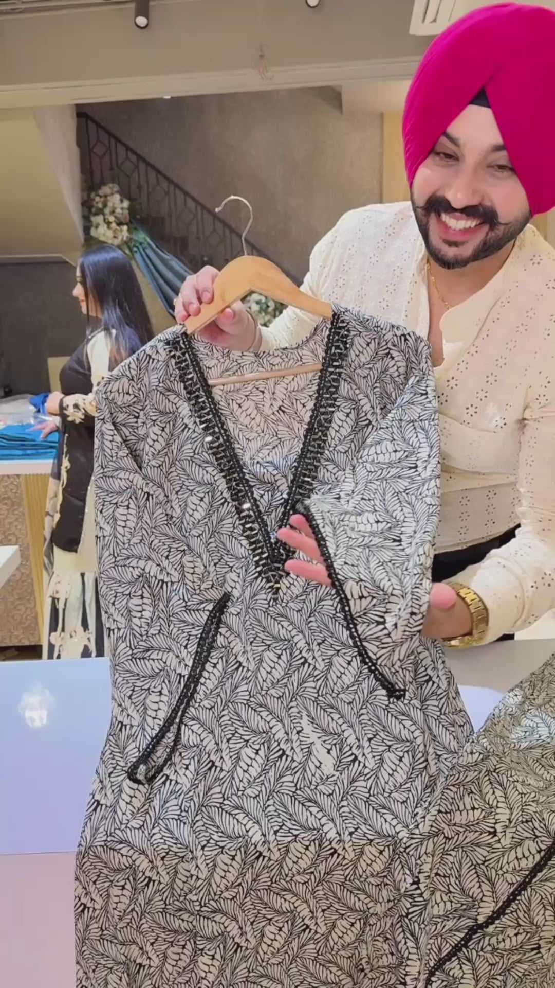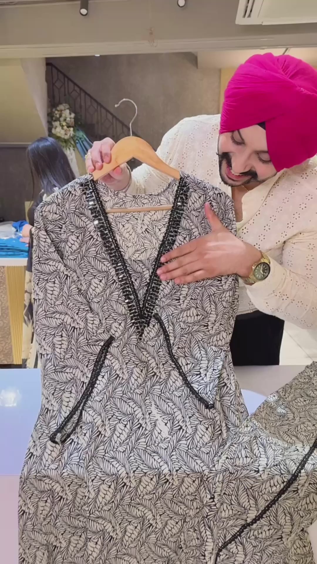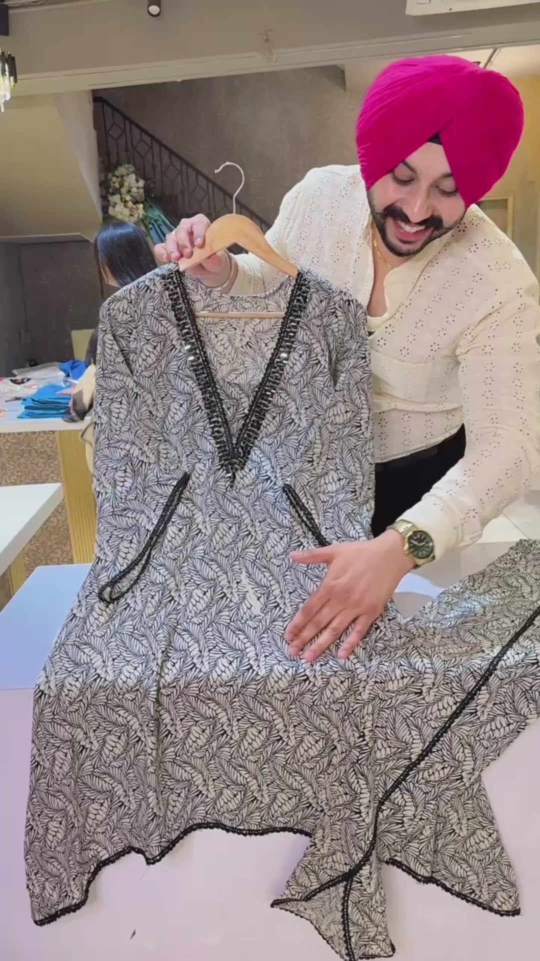 White & Black Rayon Mirror Work C-Cut Coord set with Styish Tulip pants