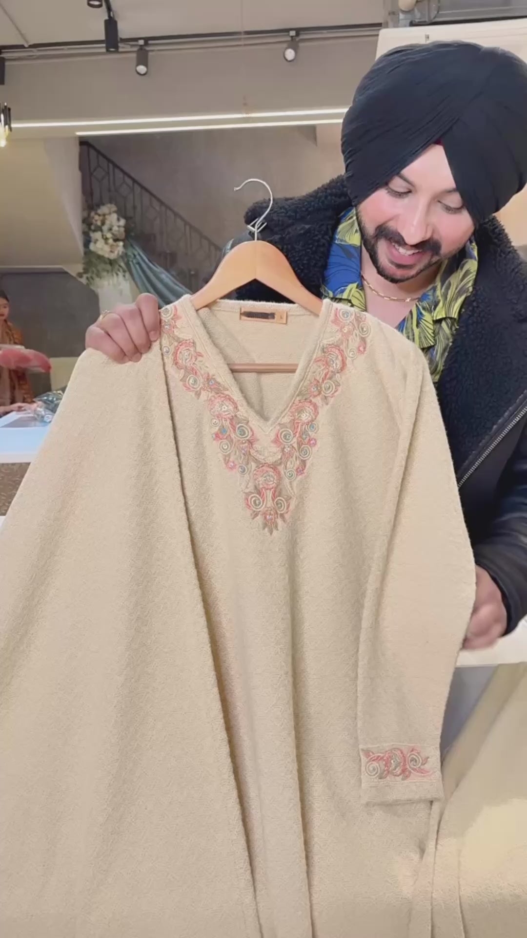 Light Biege Woolen Office Wear suit with embroidered work on neck