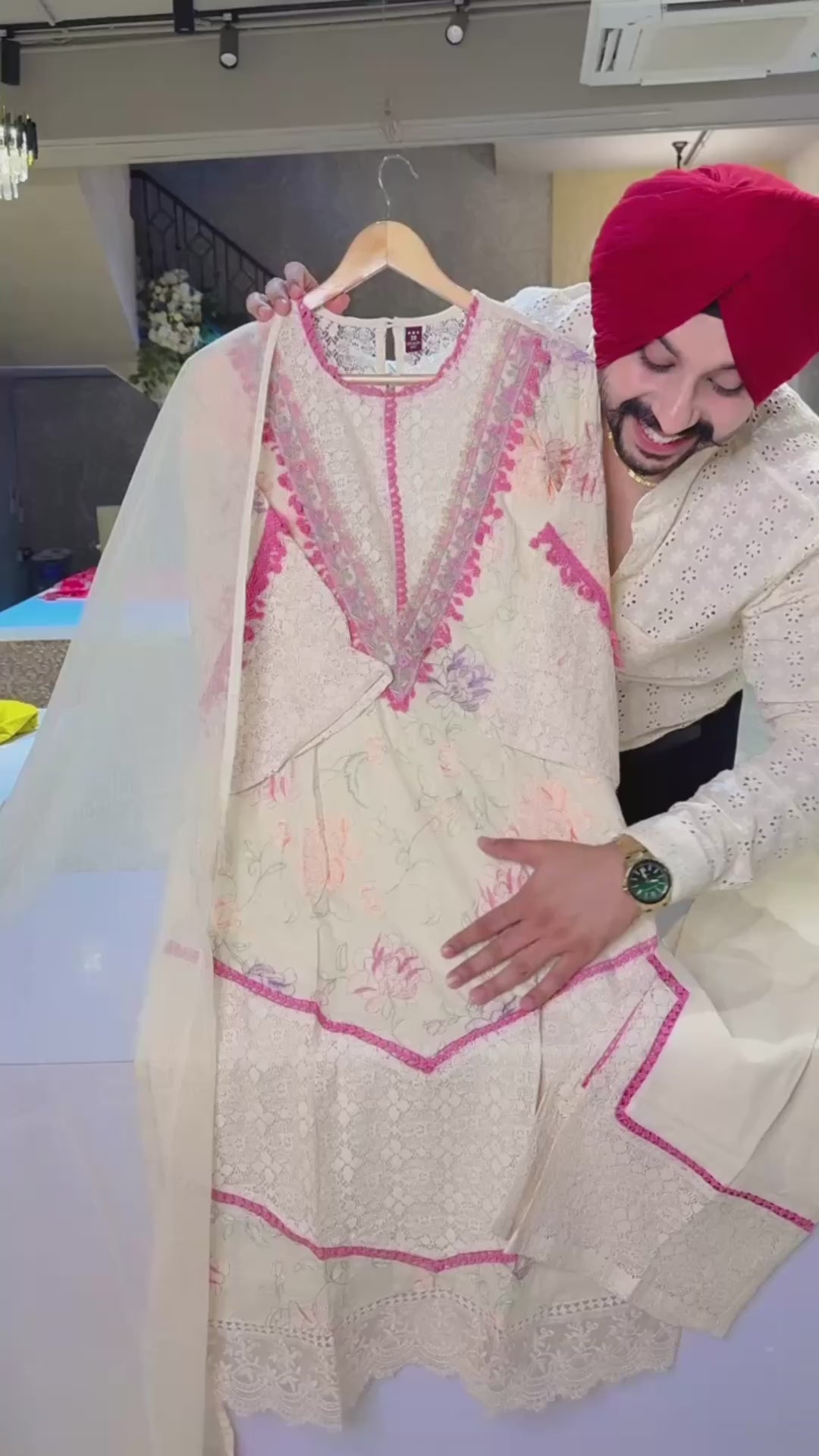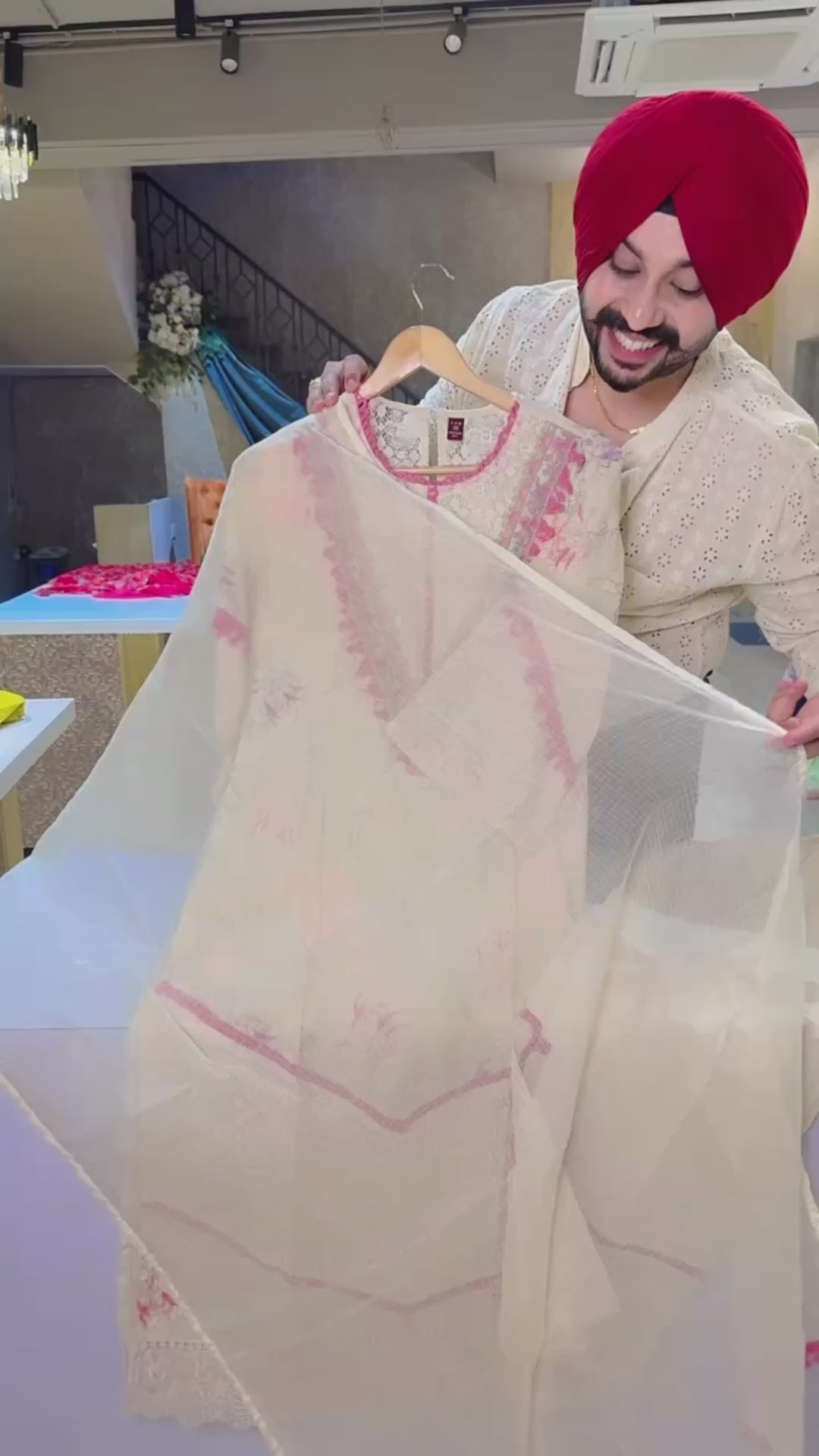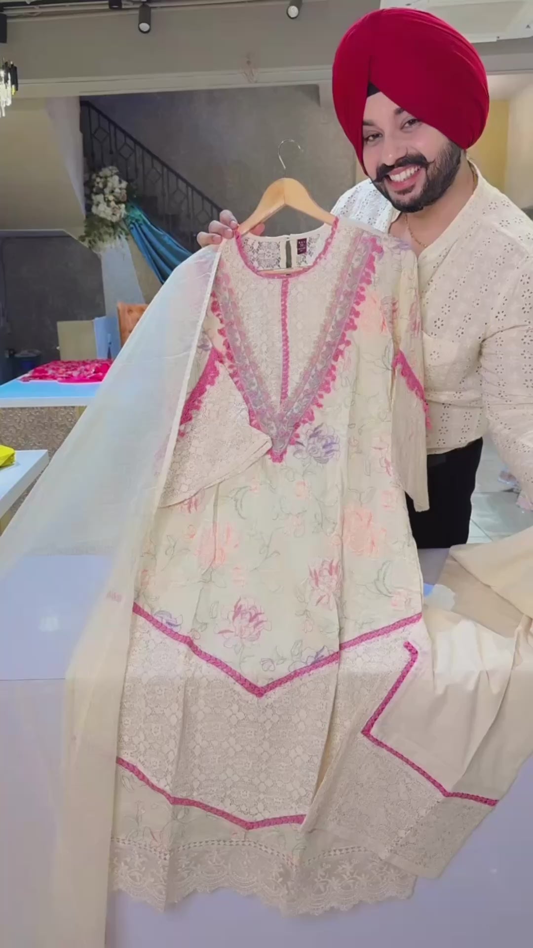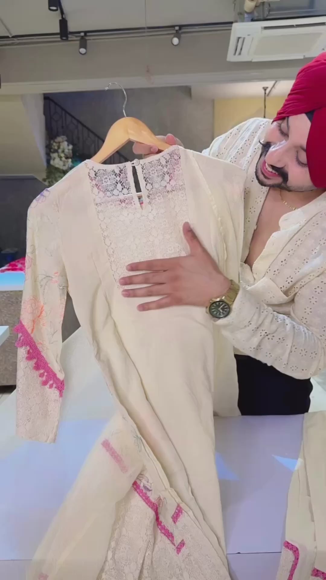 Off White Mal Cotton Heavy embroidered & Crochet work Pakistani Suit with Kota Doria Duppata