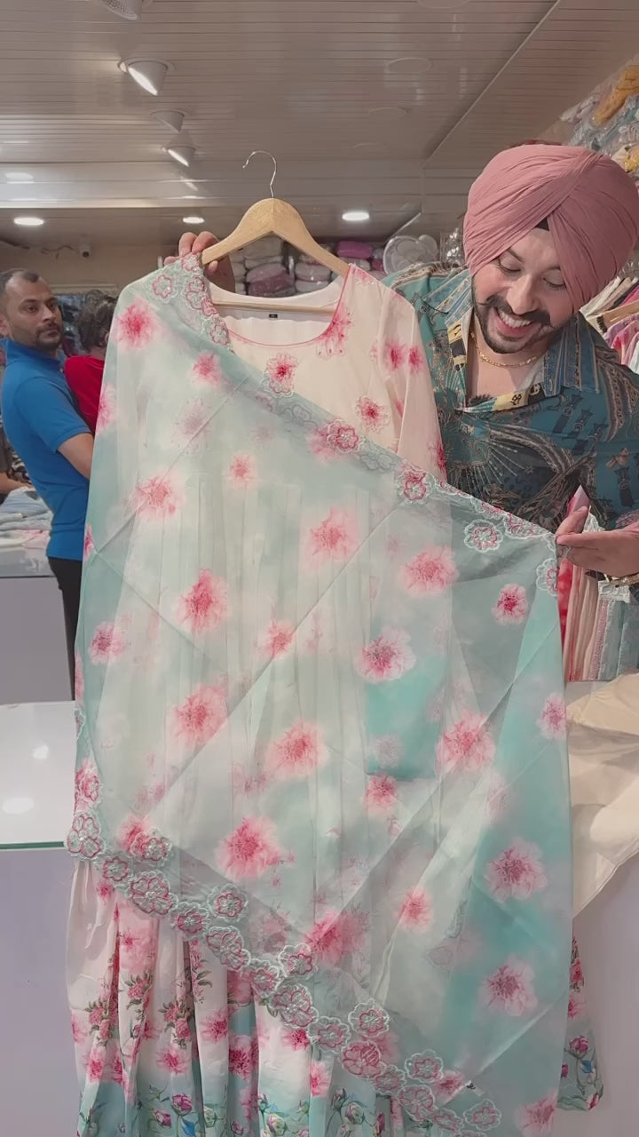 Off White Girlish Full Flair Georgette Anarkali Suit with Beautiful Organza Duppata