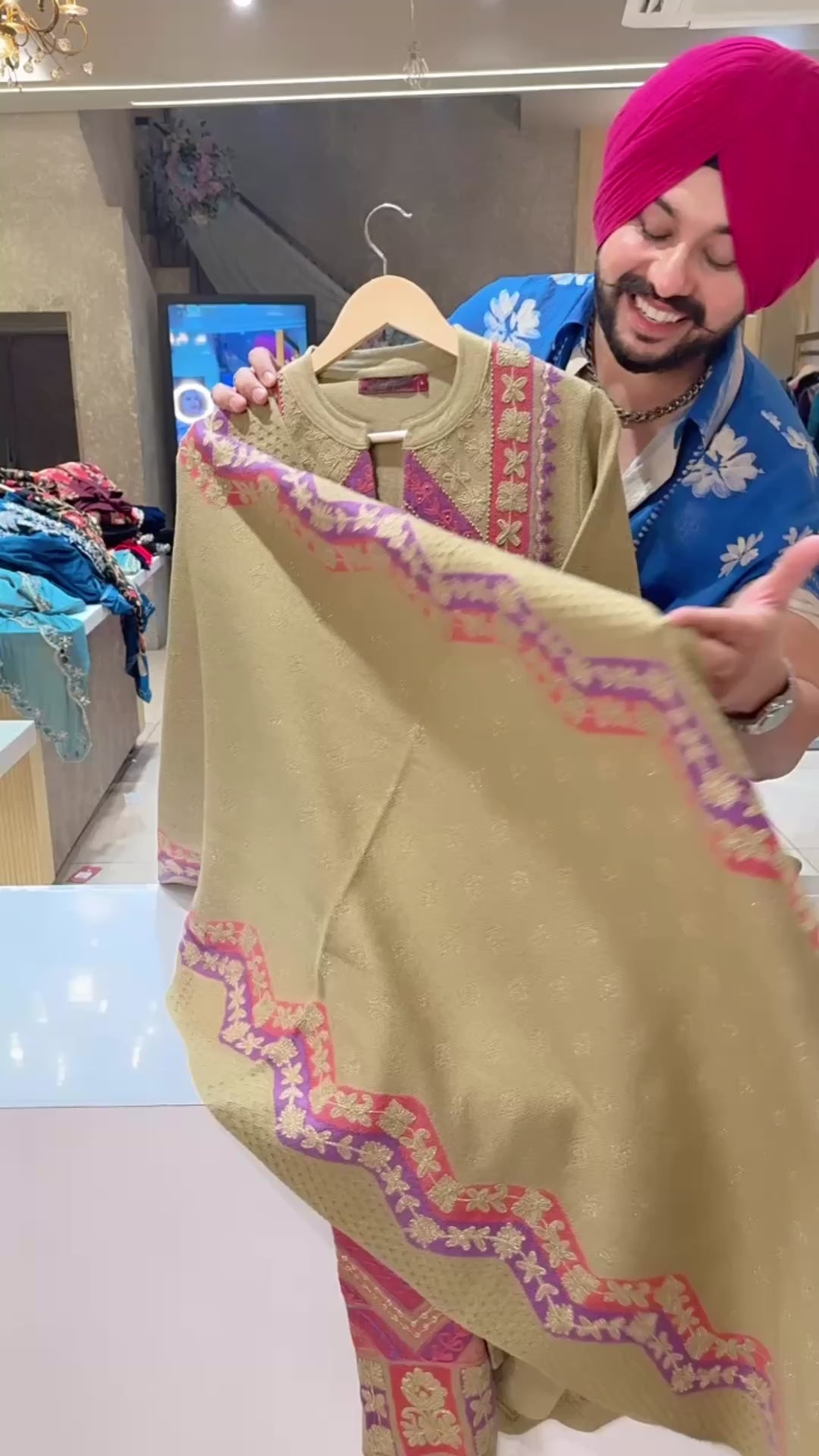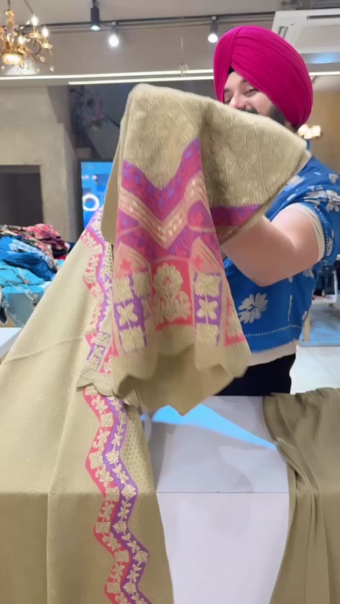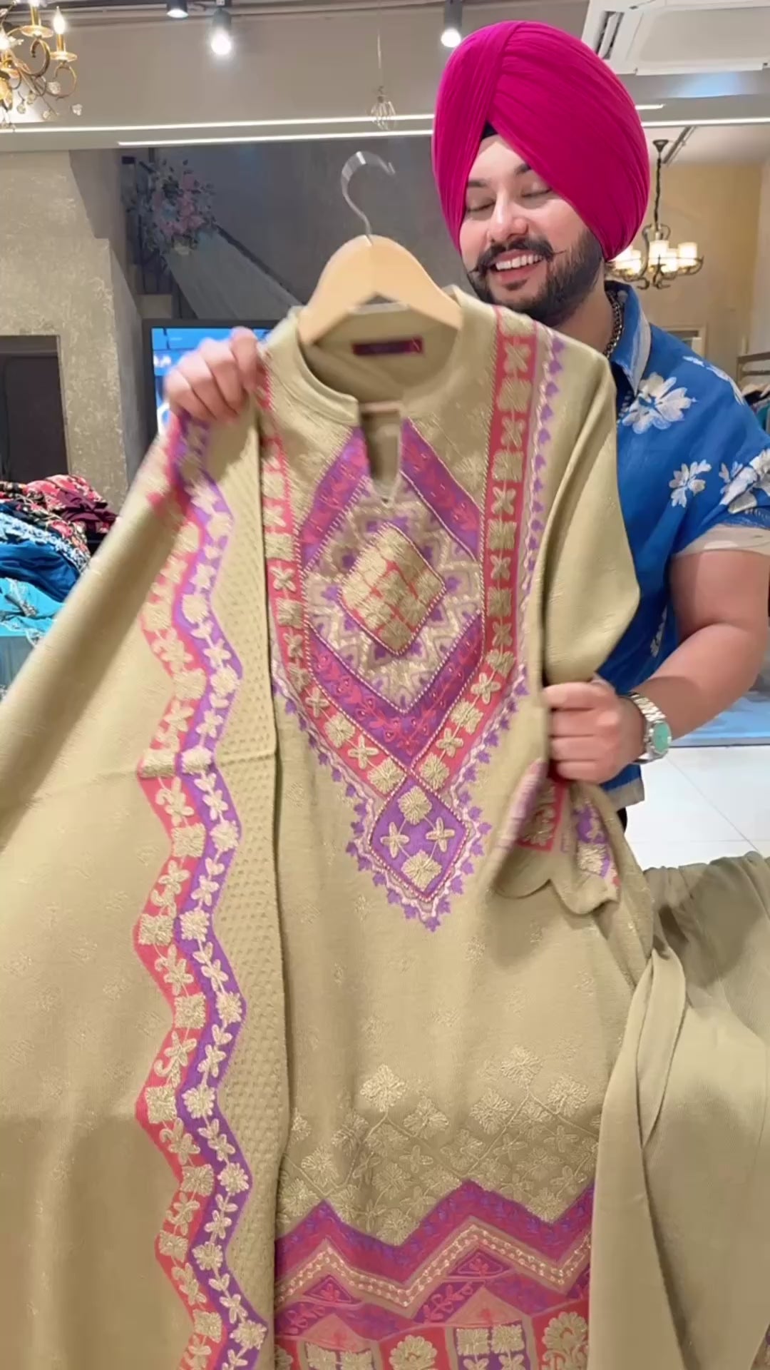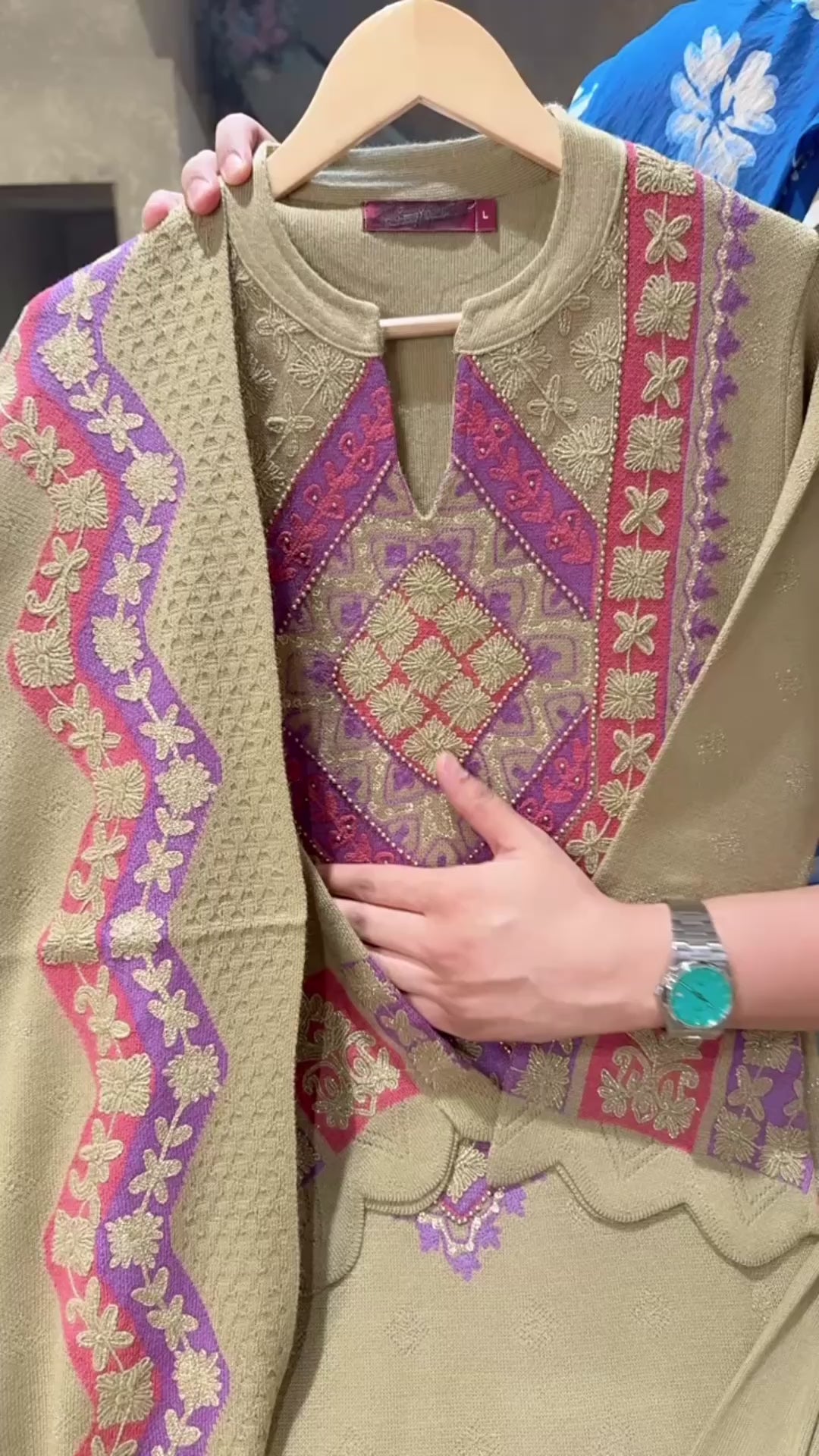 Dark Beige & Multicolored Soft Woolen Embroidered Party Wear Straight Suit with Beautiful Duappta