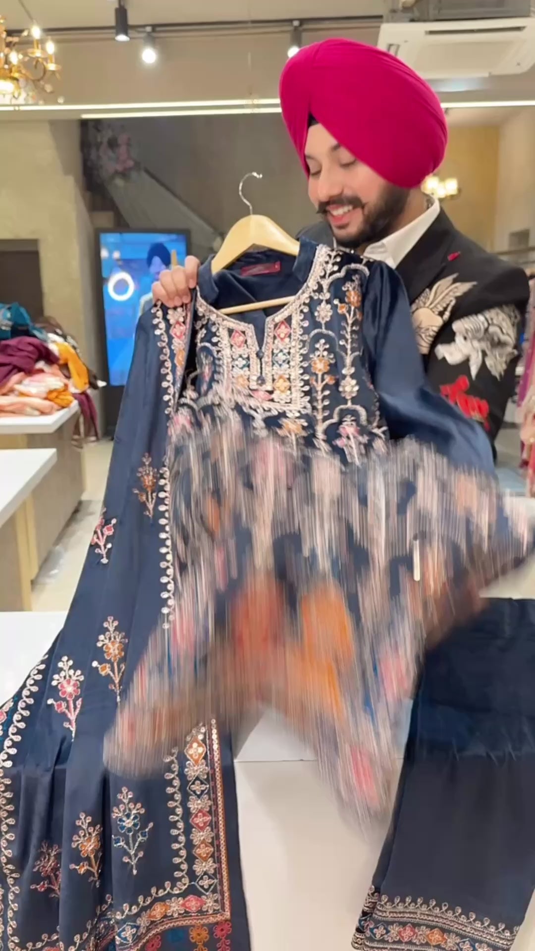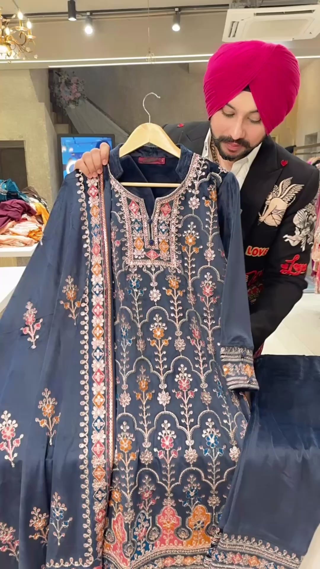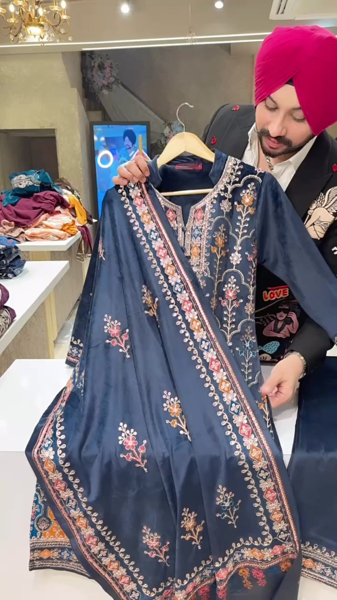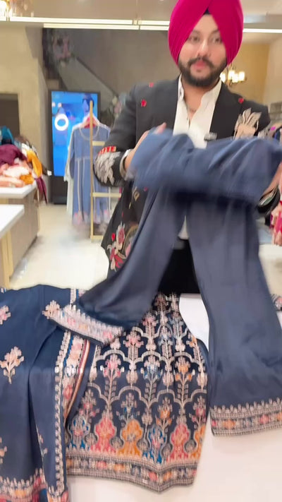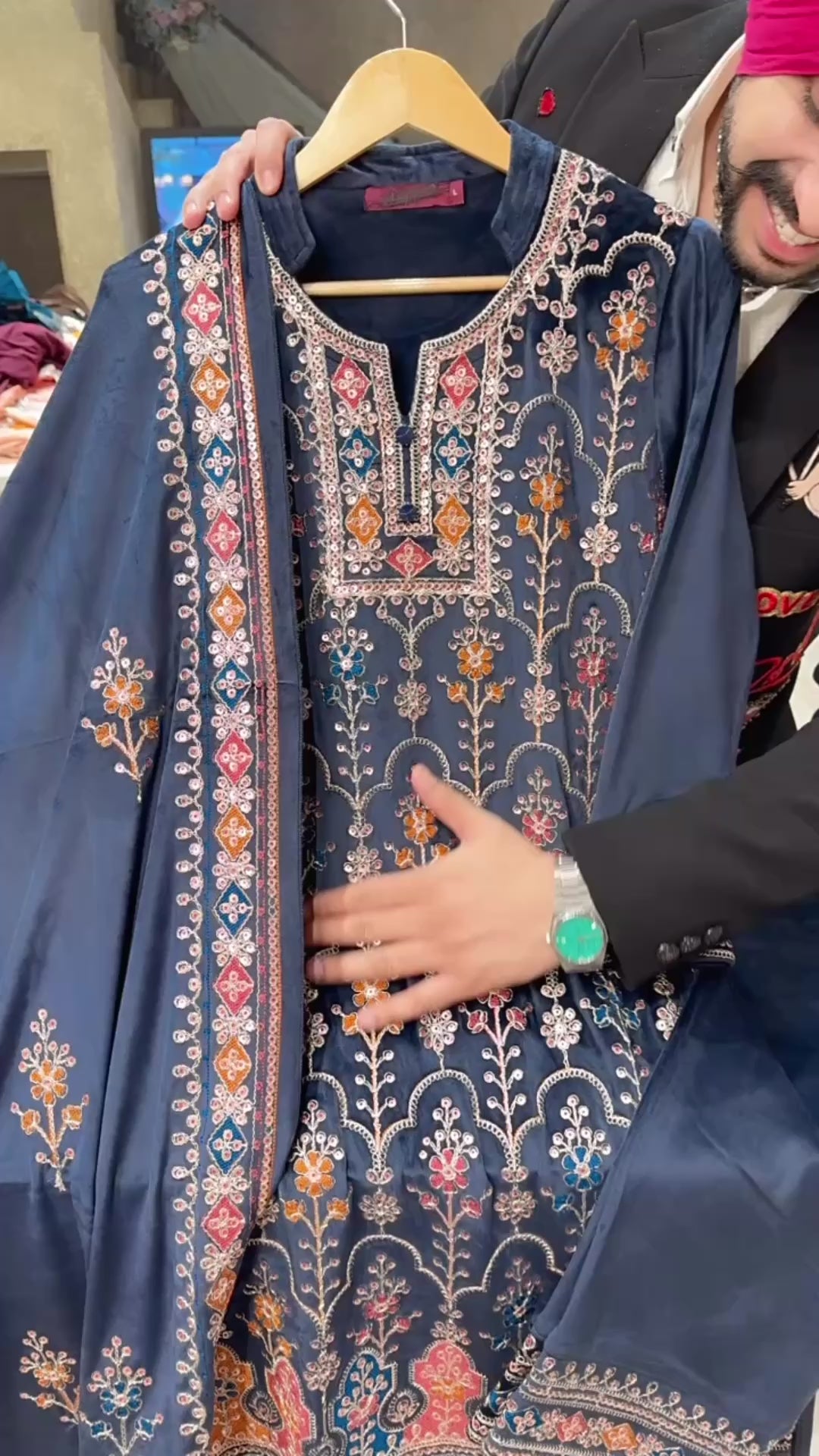 Dark Blue Premium Strechable velvet Heavy embroidered Party wear Straight Suit with Beautiful Duppata