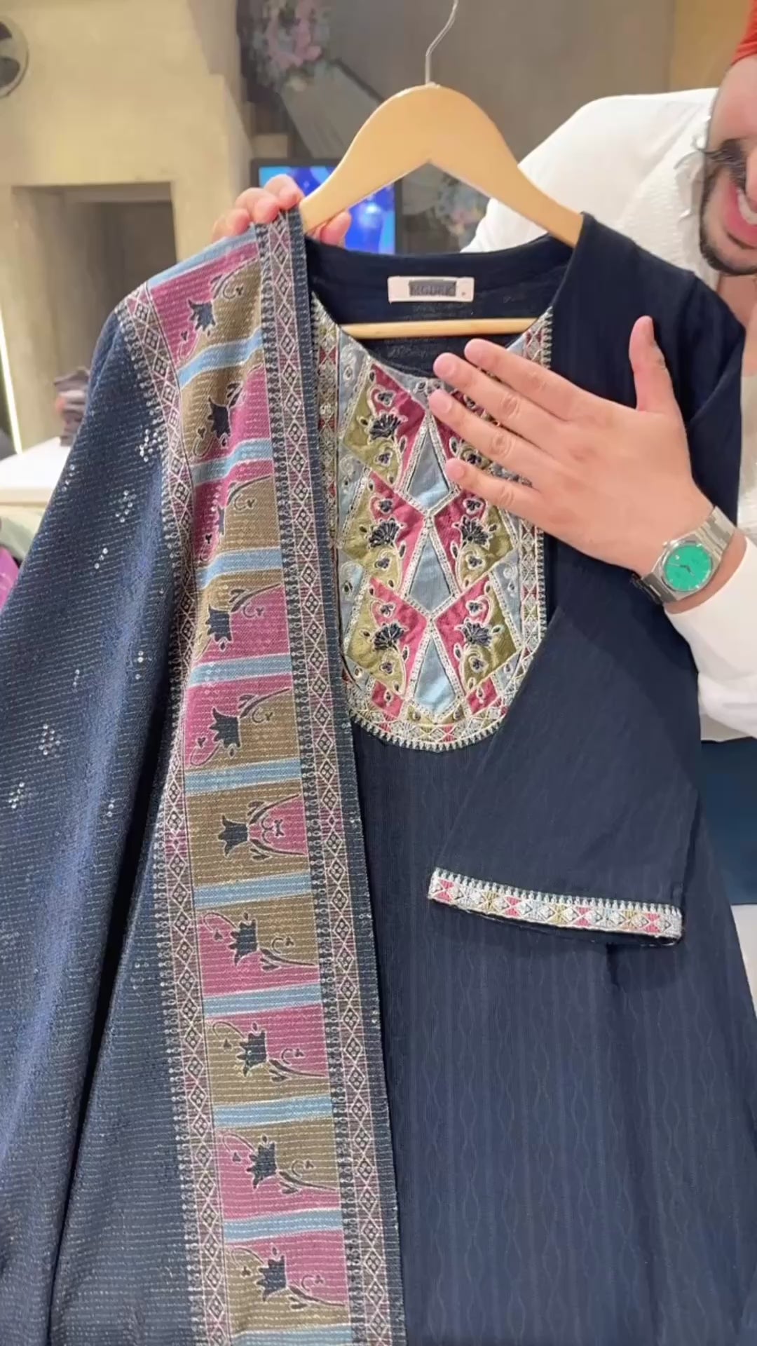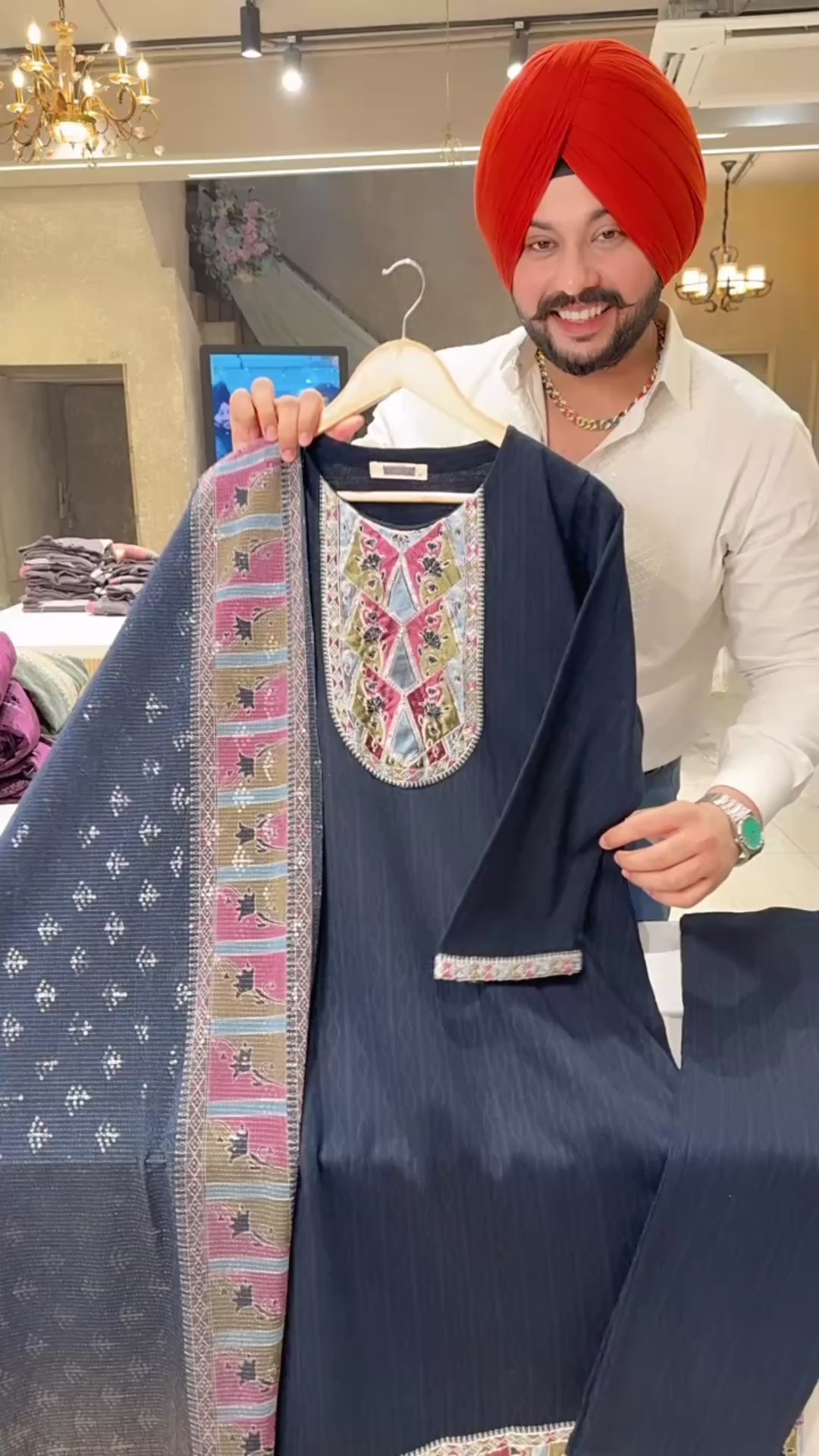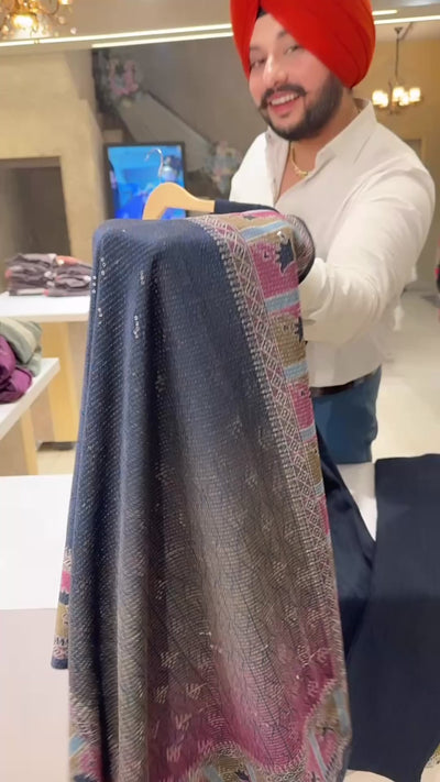 Dark Blue premium Woolen Embroidered Straight Suit with Floral Print Self Sequins Duppata