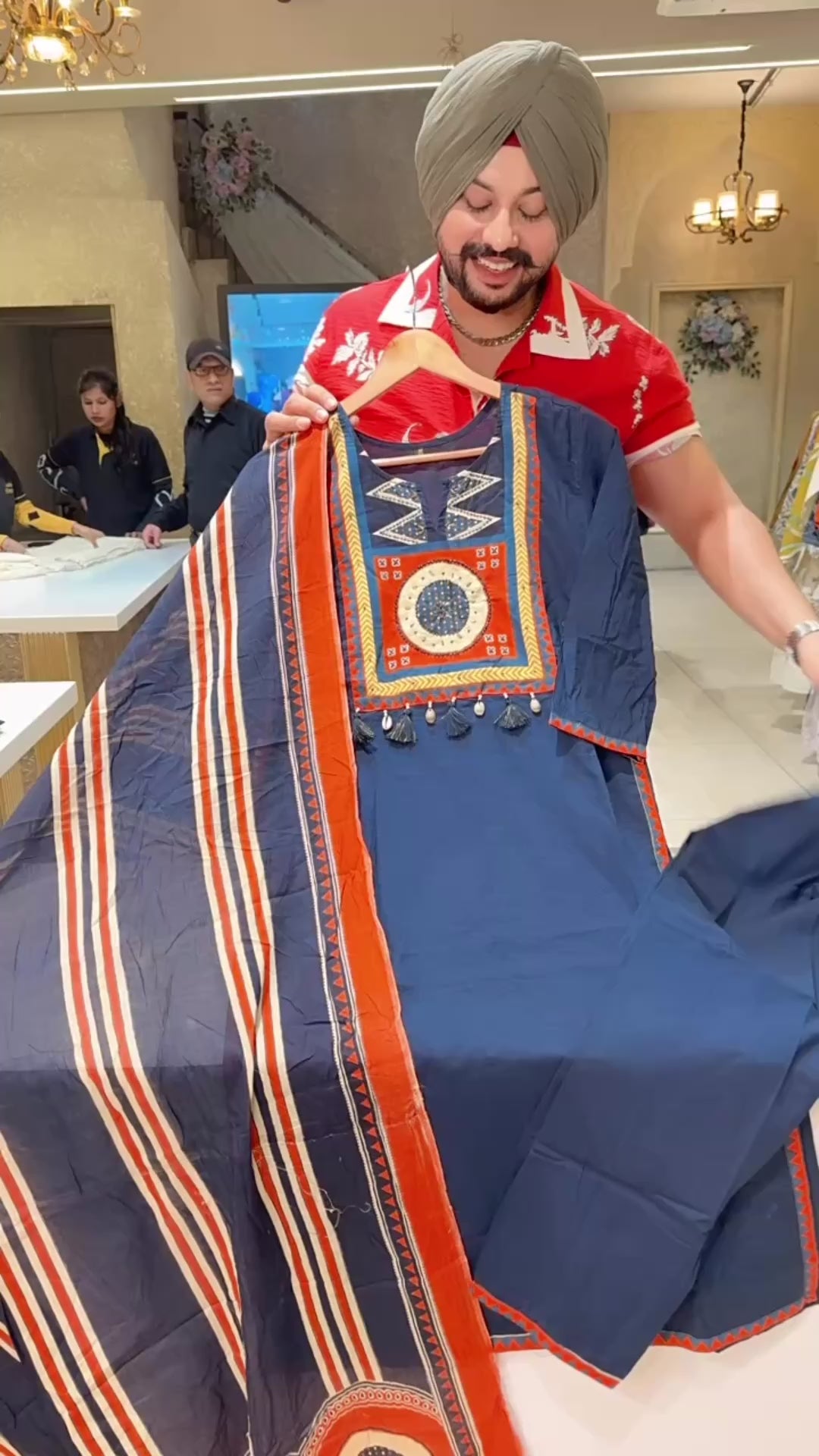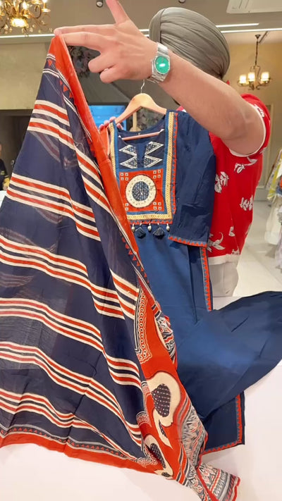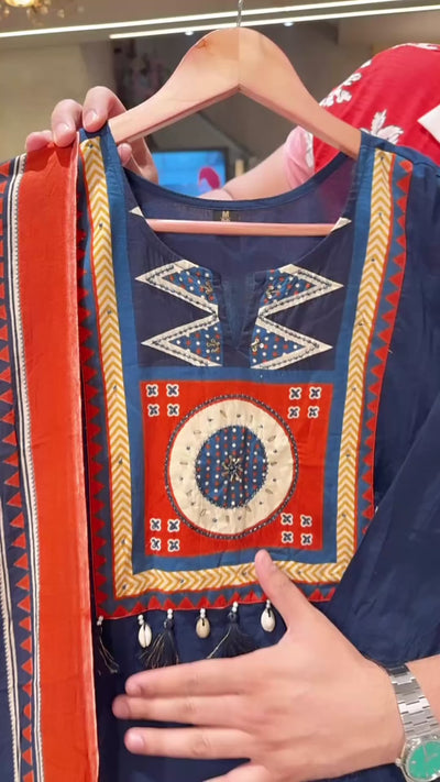 Dark Blue Pure Cotton Office Wear Suits with Sleek Hand embroidery work on neck