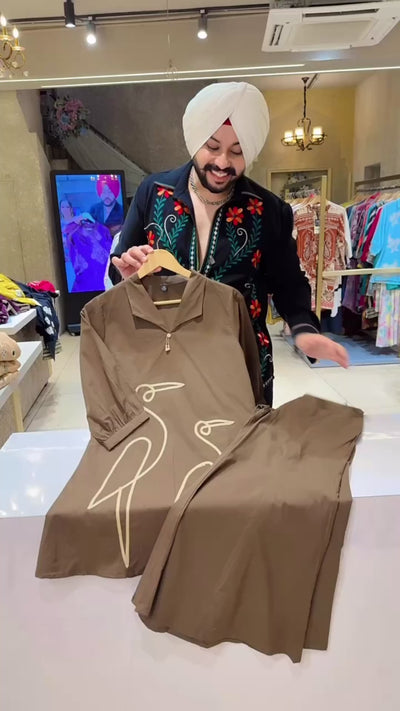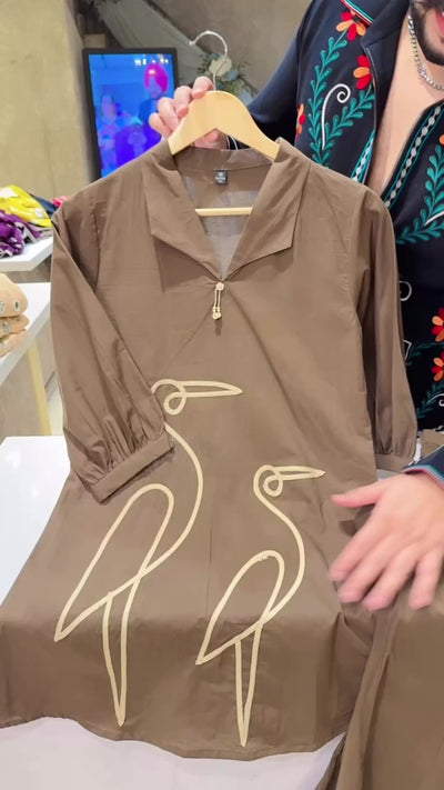 Dark Brown Soft Cotton Flamingo Patchwork Bell Bottom Coord set