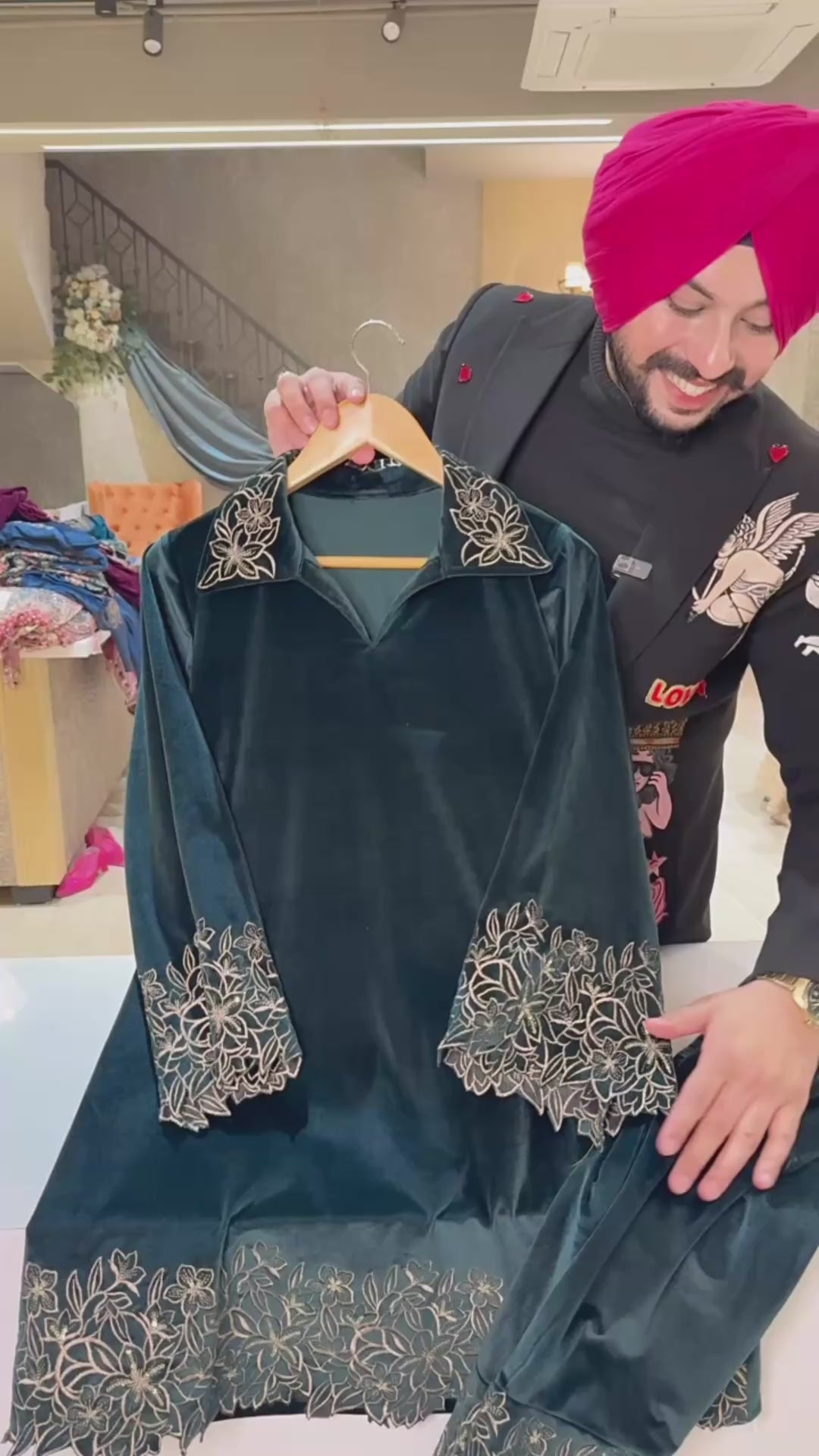 Dark Green Heavy Strechable Velvet Collar neck Pakistani Coord set with Heavy Embroidery Work on it