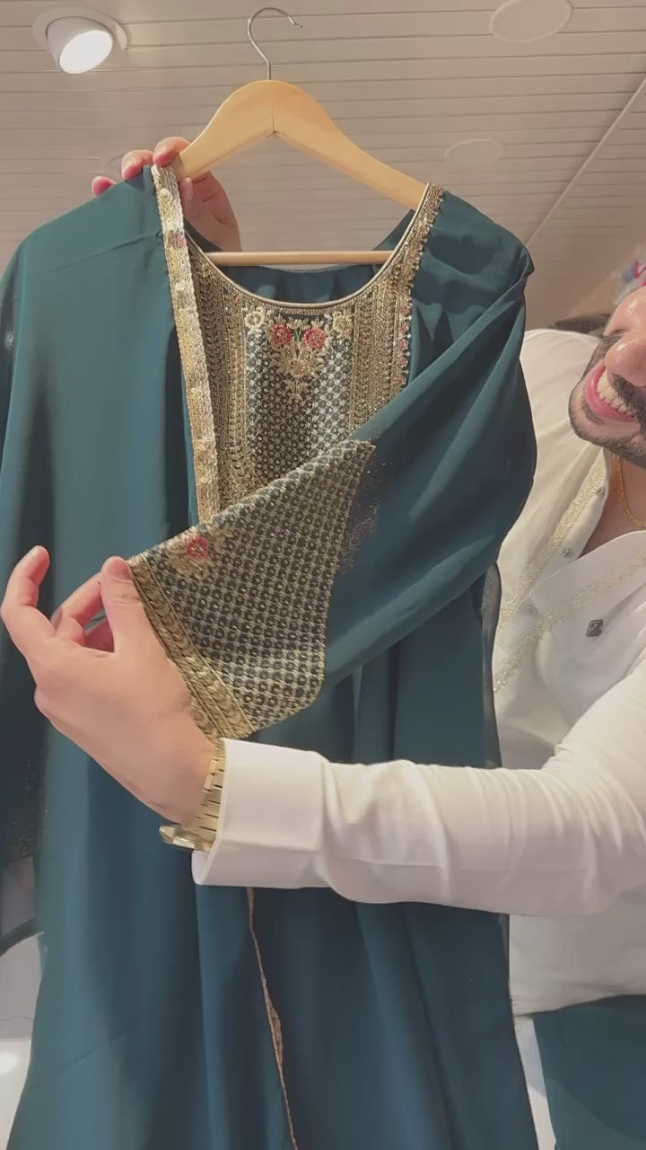 Dark peacock Georgette Straight Suit with Beautiful Embroidery work