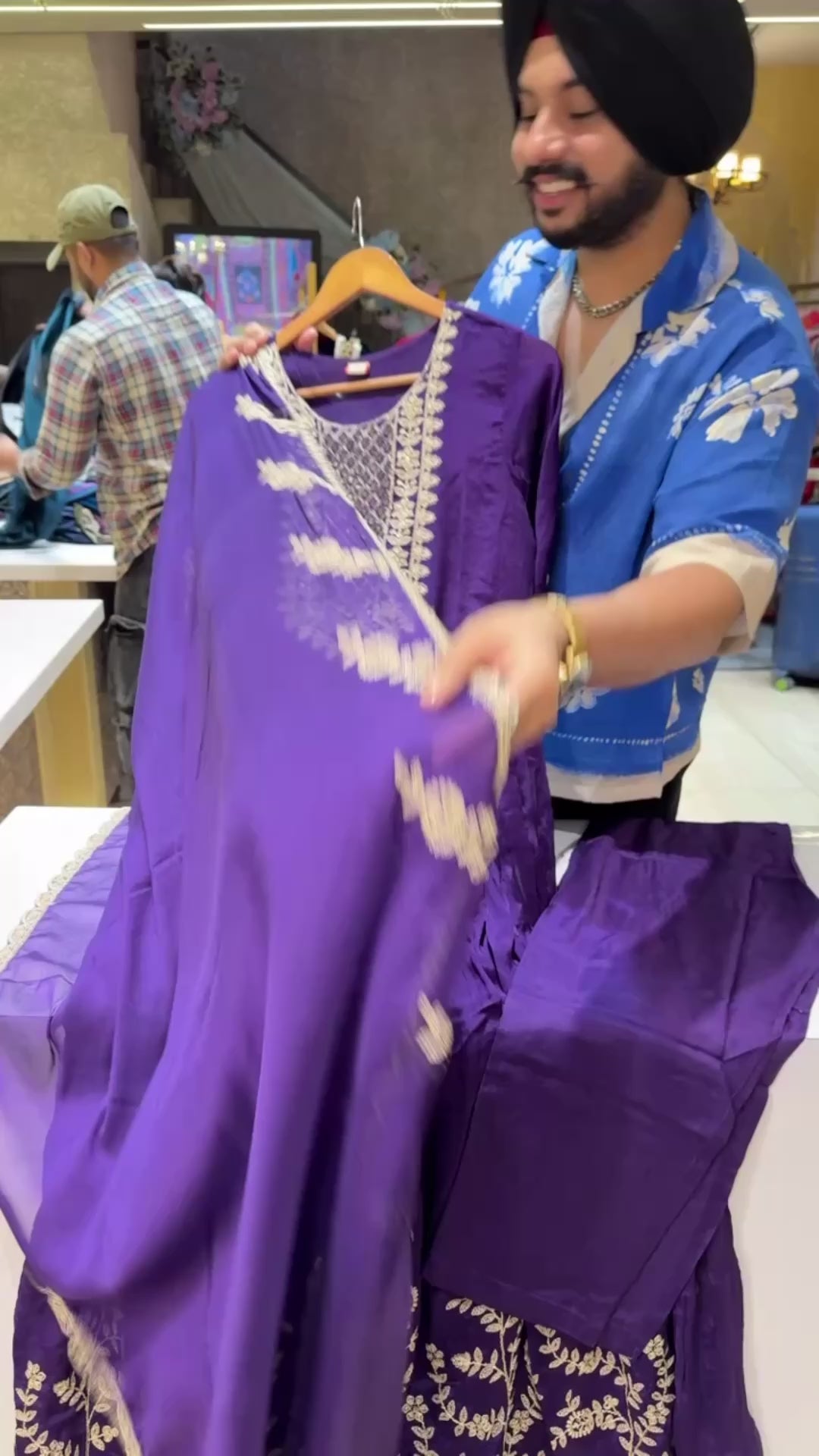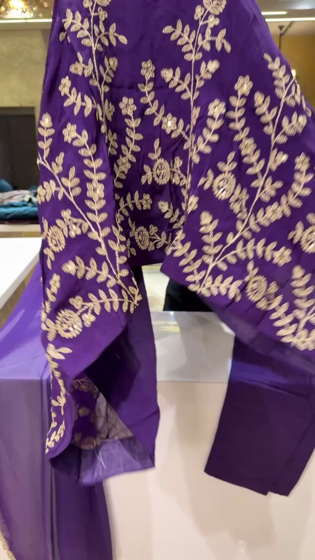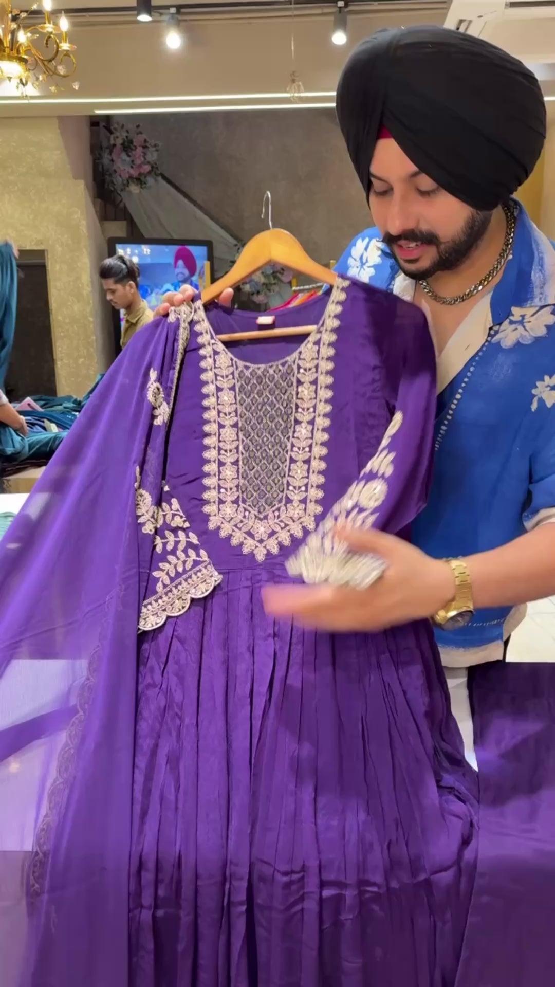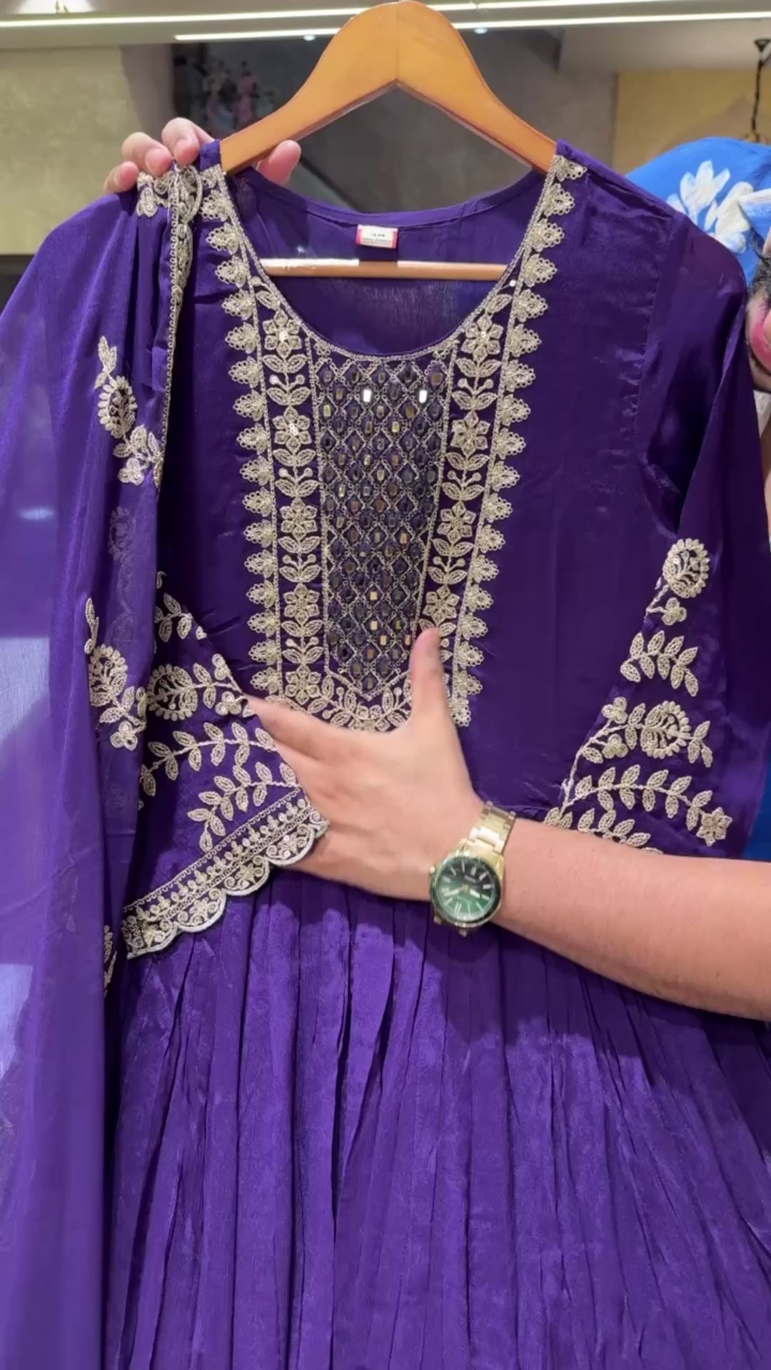 Dark Purple Chinon Embroidered Full flair Party Wear Anarkali suit with Beautiful Duppata
